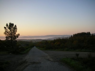 I left early as I found it impossible to sleep. My bunk was located between a snorer who also racked in smokers cough through the night and a women who snored non-stop. I am pleased that I got going when I did as it was a glorious with cold air and pale blue early morning sky. The start of the walk was a gradual uphill for the first 10km. The view back was spectacular with the mist shrouding the low lying land as the sun came up over the horizon. The countryside I walked though today was very similar to yesterday. Many small dairy farming villages with cows stopping to give me stare as I passed.