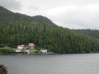 They looked like such a lonely outpost in what could be a harsh landscape. On the way into the ferries first stop in Katchikan – sky was an inky grey colour which matched the colour of the breaching humpback whales we saw on the way into port. Here the only contrast – in colour and size – was the huge cruise ships moored close to town. From here we stopped at Wrangell and Petersburg and then our destination Juneau. The Wrangell Narrows would have to be the most stunning waterway we have been through. With steep mountains so close to the ship you could almost smell the spruce trees.