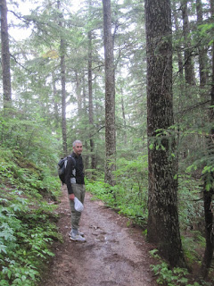 Dizzying steep climb with slippery muddy path and a cold constant drizzle seem to have set in for the day. We only made it half way to 2000 feet where the sub-alpine vegetation started.