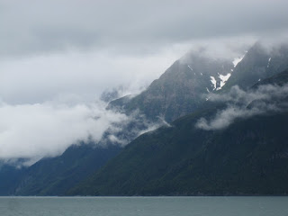 The ferry between Juneau and Skagway passes though some more stunning scenery. Just when you think it can’t get better – it does. Steep, snow covered mountains shrouded in mist lined the western side of our passage north.