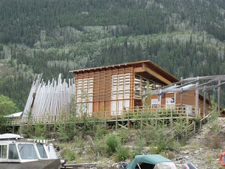 It looks like the only building that has been constructed in Dawson since the goldrush although a lot of buildings have been moved around. Not far from our camp was another sad sight – the majestic wooden stern wheel paddleboats which plied the Yukon River for decades, lay abandoned in a jumble of decaying timber and rusting metal.