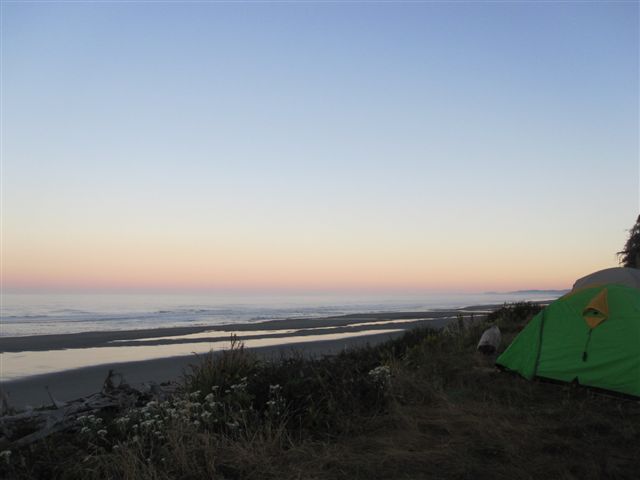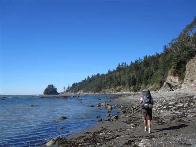 The crashing surf sounded like roaring thunder as we tried to sleep on our first night camping on the beach. After spending almost every night of the past two months camped by or near a river, it was lovely to smell the ocean again. We were camped at South Beach in Olympic National Park in Washington State west of Seattle. The campground was exposed to the cold northerly wind which seemed to ease as it got dark. We were on our way north to walk the Pacific Coastal Trail north from Rialto Beach and camping along the way. Driving north early the next morning to get to start of the walk we stopped at the most beautifully named Ruby Beach. The beach was just as lovely as its name.