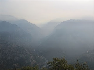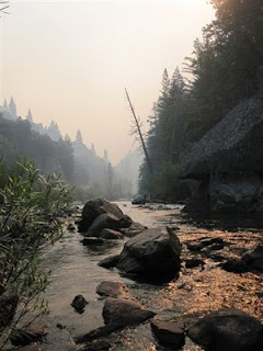 Morning temperature was zero – officially freezing, while yesterday we sweltered at 36 degrees! We had plans to say in this area for a few days but a forest fire which has been smouldering in the area for nearly two months has filled the canyons with smoke. This made breathing very difficult and obscured much of the view.
