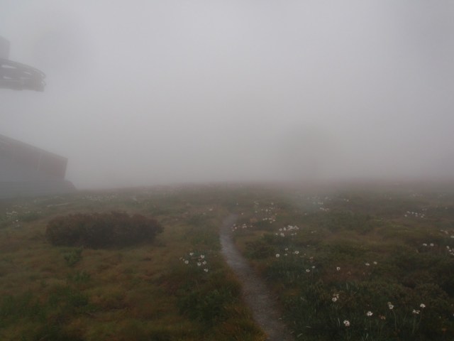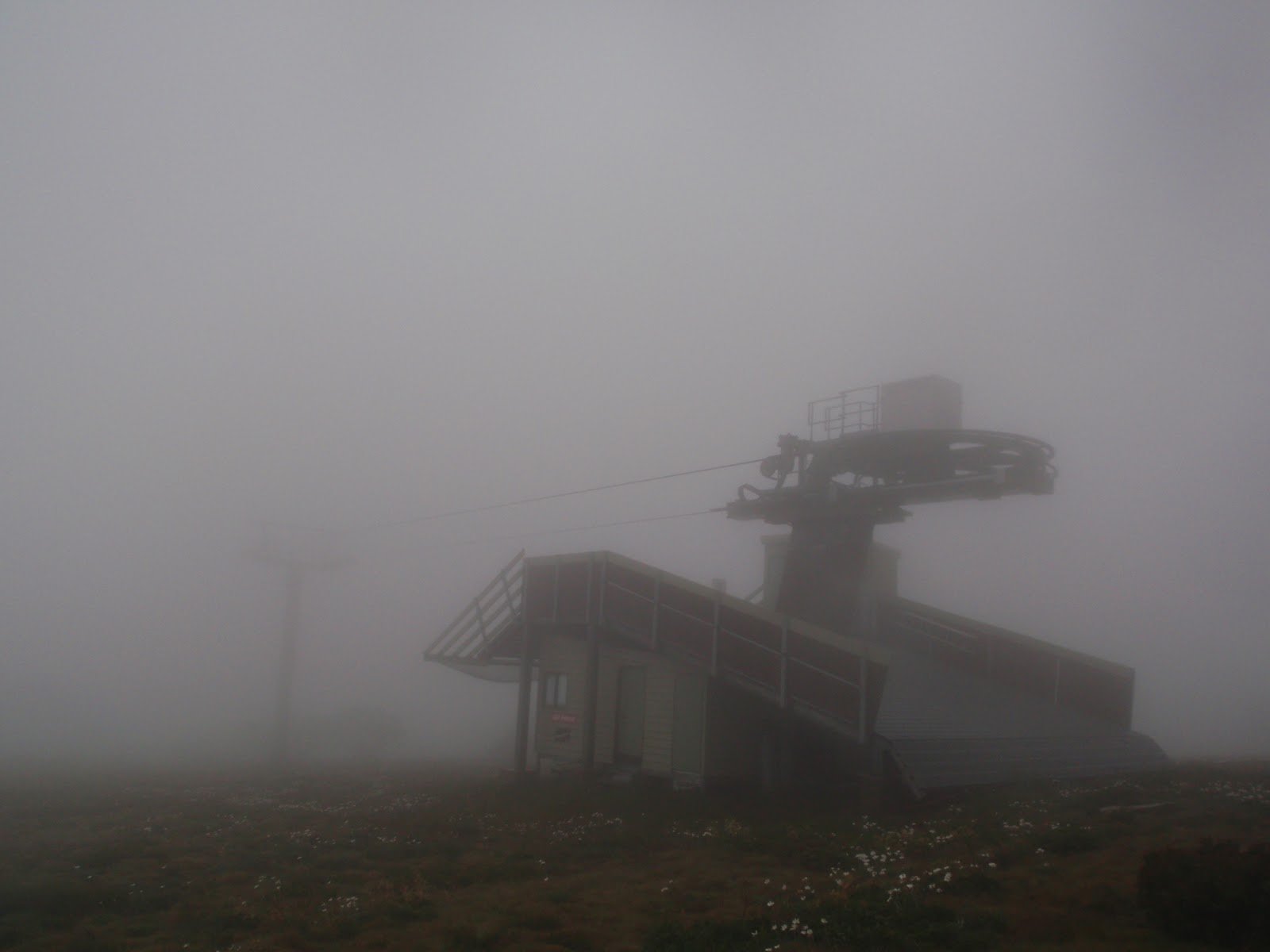 It would be great to see the location on a day with better visibility. I continued to jog along the open trail. In the distance Mt Hotham ski lifts stood as shadowy ghosts only becoming apparent as I got very close.