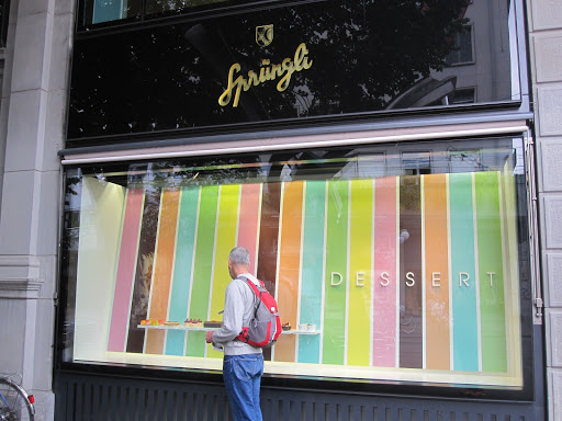 A walk along the Banhofstrasse did not disappoint – Swiss flags everywhere, expensive stores and of course Sprungli chocolates.