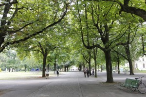 We lunched on a small island on the lake ( Ille Rousseau) in brilliant sunshine with a very cold breeze coming off the lake. The streets were busy with very smartly dressed office workers out to lunch. The chestnut tree lined promenade in the Parc de Bastions was a nice change from the noise of the streets.