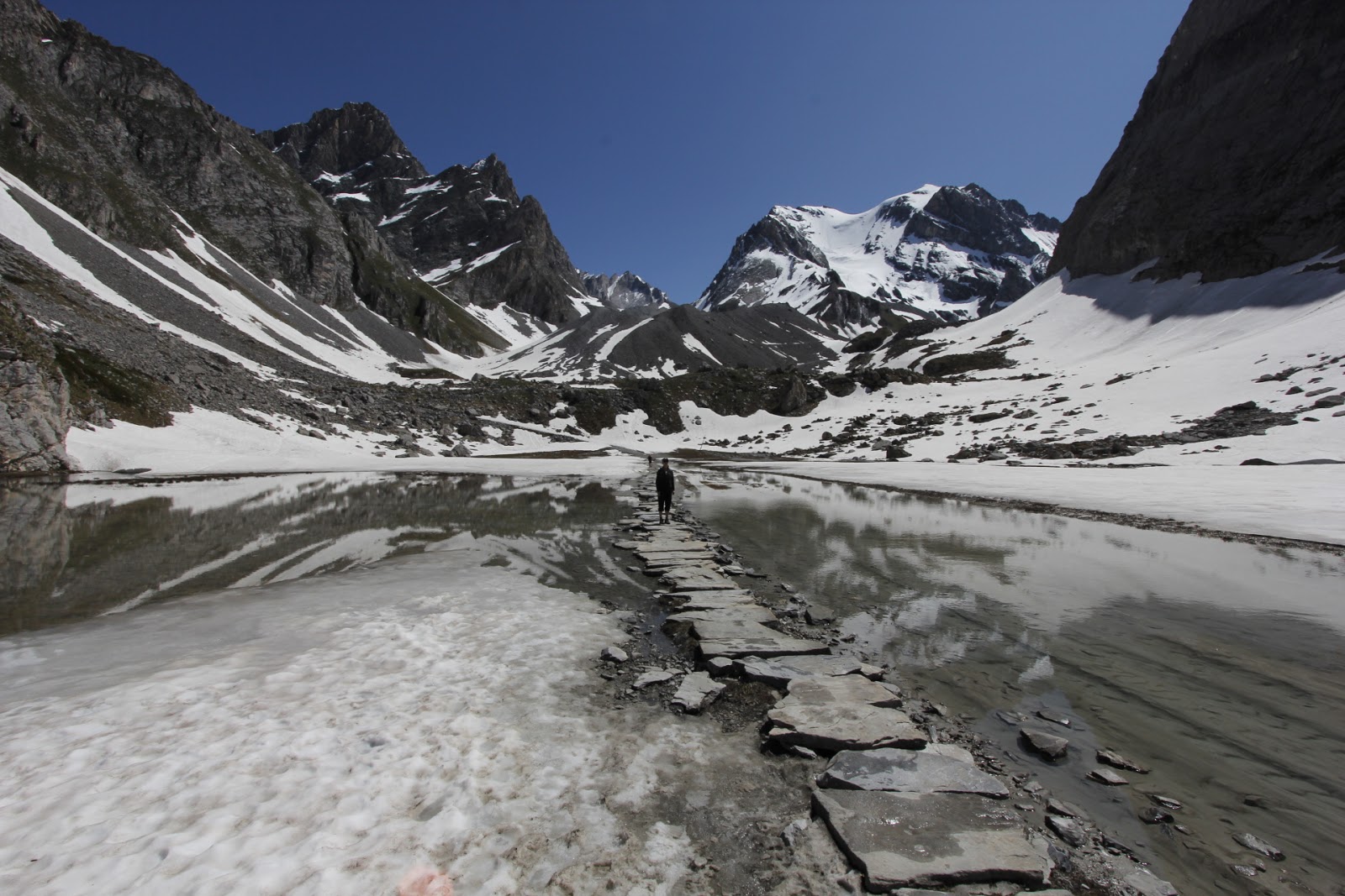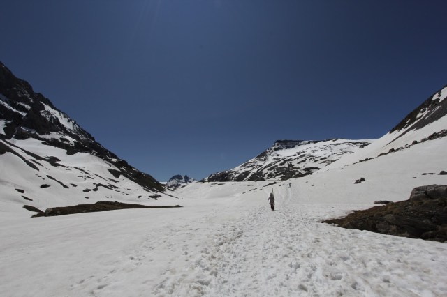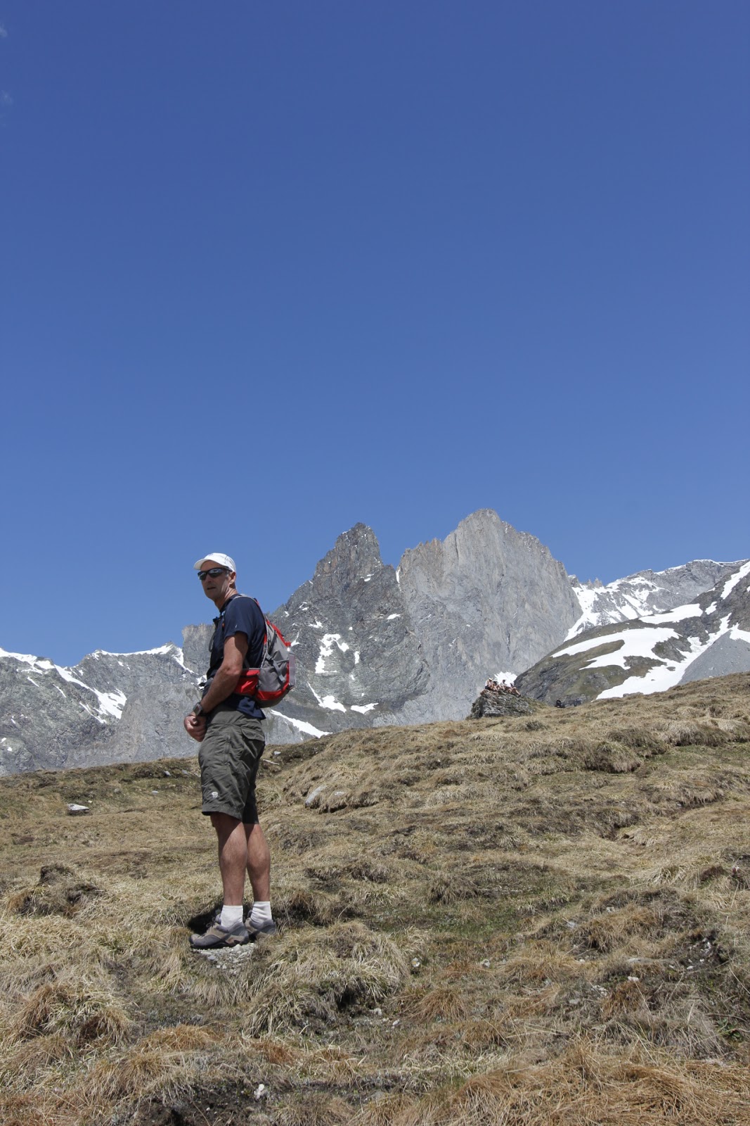 We took advantage of glorious sunny skies on Monday to hike the trail to the Col de Vanoise at 2,515m elevation. Once we got up above the treeline at about 2,000m there were wonderful open hanging valleys with lots of snow to walk through.