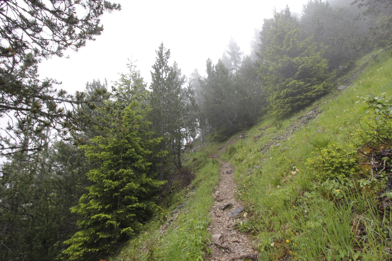 As the day was overcast and drizzly we decided to do a shortish walk to Mont Bochor which forms the backdrop to Pralignan. It is a 1km vertical rise from town and today for me it seem to go on forever. A three hour round trip with limited views from the top due to the dense mist which closed in around us.