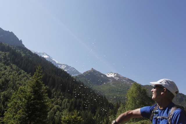 On our return leg off the Petit Mont Blanc trail we got caught behind a very large group of not happy walkers, some very reluctant to let us pass. One friendly lady gave us advice about using walking sticks next time as it much better for your knees.