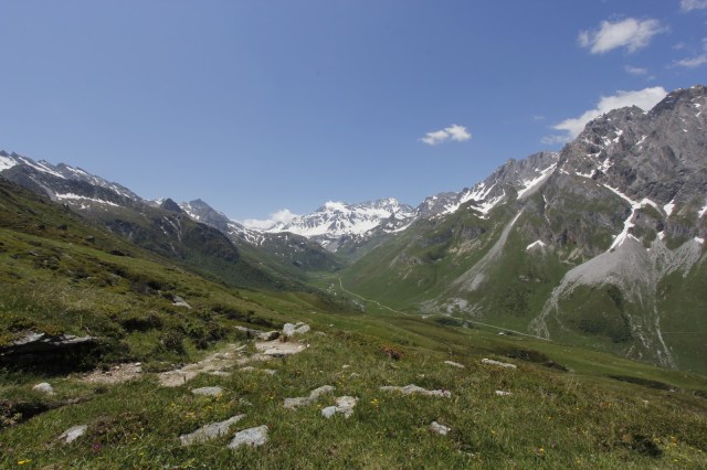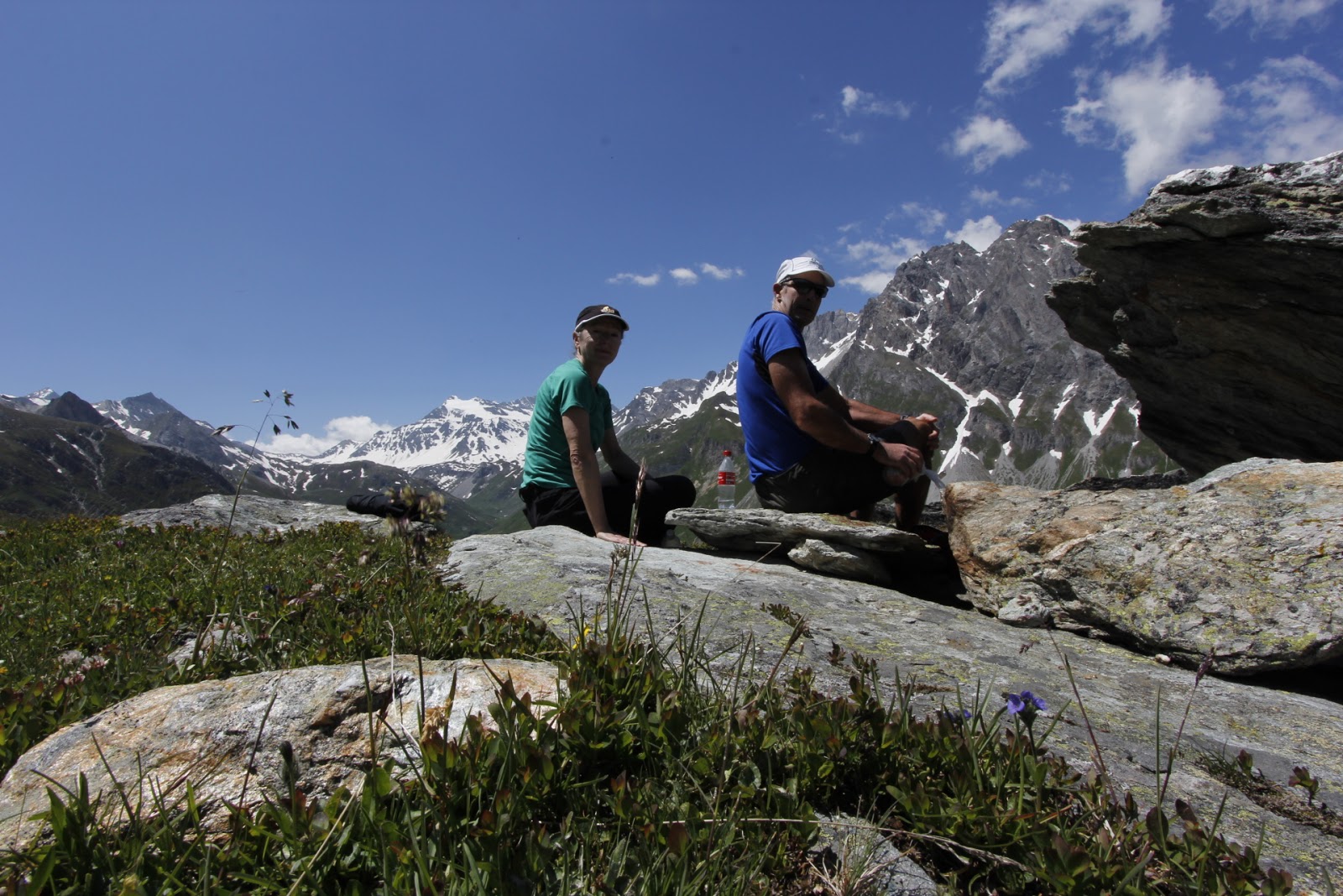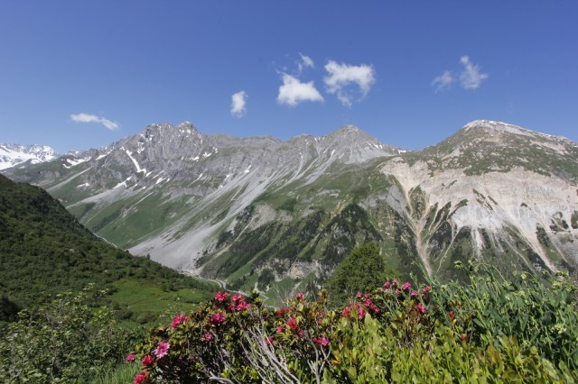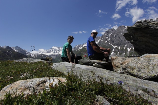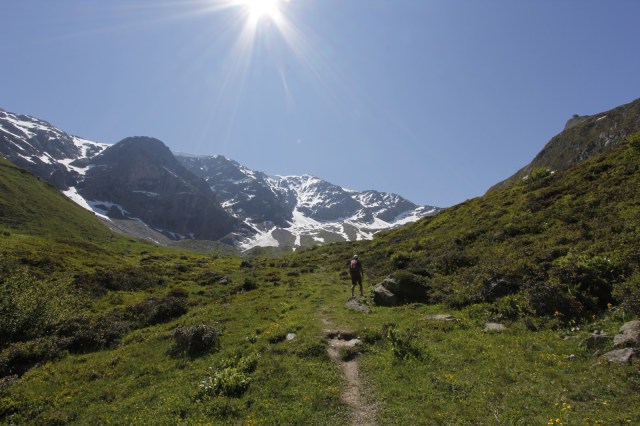 The sound of birds chirping woke me this morning. Clear blue sky with the sunrise illuminating the distant views of snow cover peaks were visible through the bedroom window. Being our last day in this beautiful valley we decided to walk out towards the Refuge du Roc de la Peche following the TGV race route.