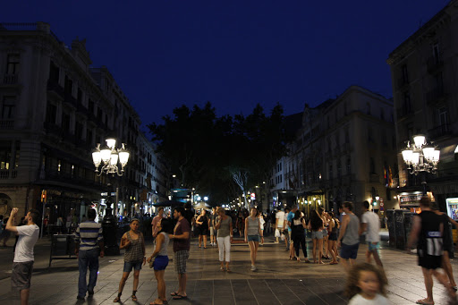By nightfall, the temperatures start to cool down a bit and La Rambla and the narrow passageways near the Cathedral seem to draw thousands outdoor to promenade. The sky at night is a magical blue colour, the air is warm and the buzz of people enjoying being outdoors is in such stark contrast to our own quite suburban life.