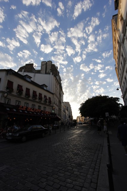| Beautiful evening sky with cotton candy cloud as we wound our way through Montmatre. |