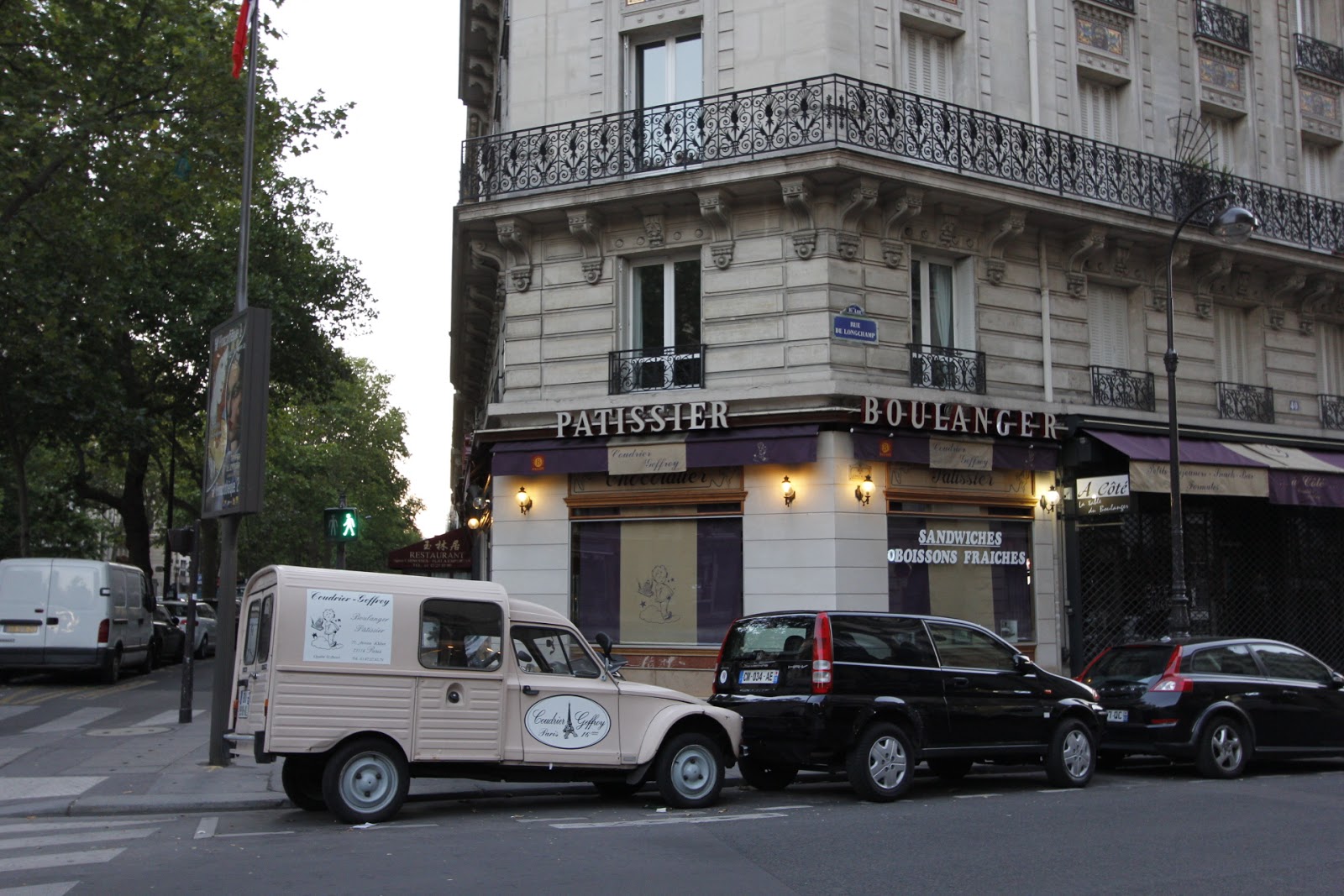 | Vintage Citroen delivery van outside a wonderful smelling boulangerie in the early morning – baking their morning croissant and bread. |