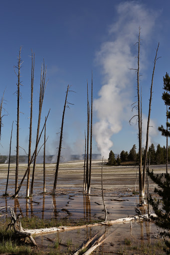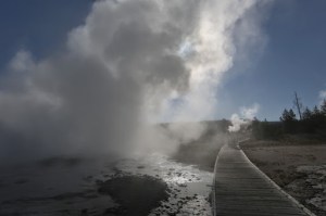 Early morning start to visit the Southern loop of the park. One WOW moment gave way to another as the size and the changing nature of the subsurface activity became evident. It was great to drive though the morning mist, few cars and no people. As the sun rose the crowds at most of the roadside stops, began to build culminating in huge crowds for the 11.35 am predicted spouting of the Old Faithful geyser. Impressive for sure but the park is so full of impressive activity – a geologists dream.