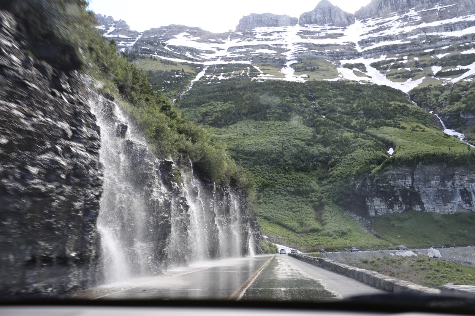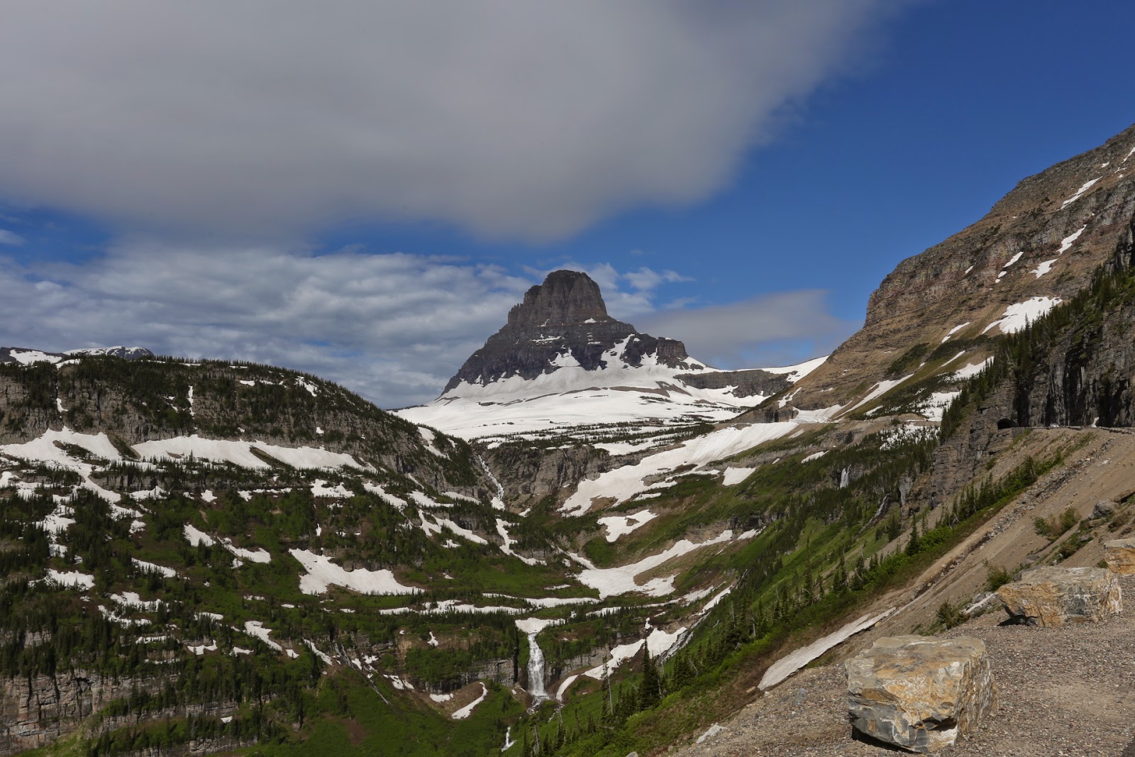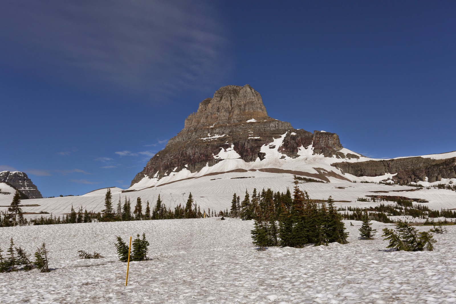 Arrived in Glacier NP by early afternoon. It was the Independence Day long weekend here so quite a few campgrounds inside the park were full. We managed to get a camp spot at Apgar near the southern entrance to the park. We had plans to drive the 50 mile Towards the Sun Road which traverses the park, stopping at Logan Pass at midway to do a couple of hikes. The early morning drive along the Lake McDonald was stunning and as we approached the pass the amount of snow by the roadside increased. It was on the trail-heads that it became apparent that without skis or snowshoes we were not hiking anywhere, the snow was well over 2 m thick. We drove out of the park to Many Glacier and then to Two Medicines Lake before heading back to camp.
