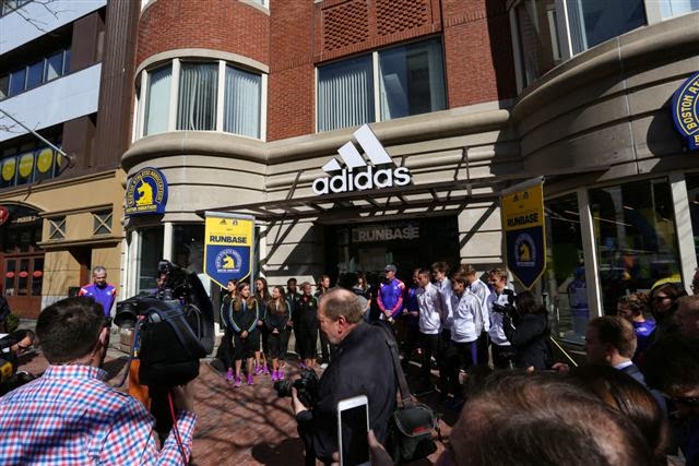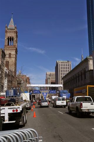 the the first North American RunBase Store sponsored by Adidas and Boston Marathon and located at Mile 26 of the Marathon course. After the dignitary speeches the ribbon was cut and we could walk through. Its really an Adidas store with a few museum pieces of the Boston Marathon. The marathon finish line was being set up and it is all beginning to feel so real. I walked westwards along the marathon course and crossed over the Fens, a wetland with a watercourse passing through the middle. Fenway Park, the baseball stadium , was just on the other side. Further west is the REI outdoor goods store where I managed to spend a couple of hours before heading back to town. Lunch at DeLuccas deli in Newberry Street, coffee in a French Patisserie in the Prudential Center and it was time to head back. Sections of Boylestone street and Commonwealth Avenue have such stately apartment buildings. All looking so grand with the first tree in blossom that I’ve seen so far. I cant imagine how good it must feel to the l.ocals to have all this sunshine and blossoms after one of the most brutal winters this area has experienced. No wonder everyone is in such good spirits. Had dinner with a lovely Strider Linda, who is running Boston for the first time. Now to kick this flu before race day.