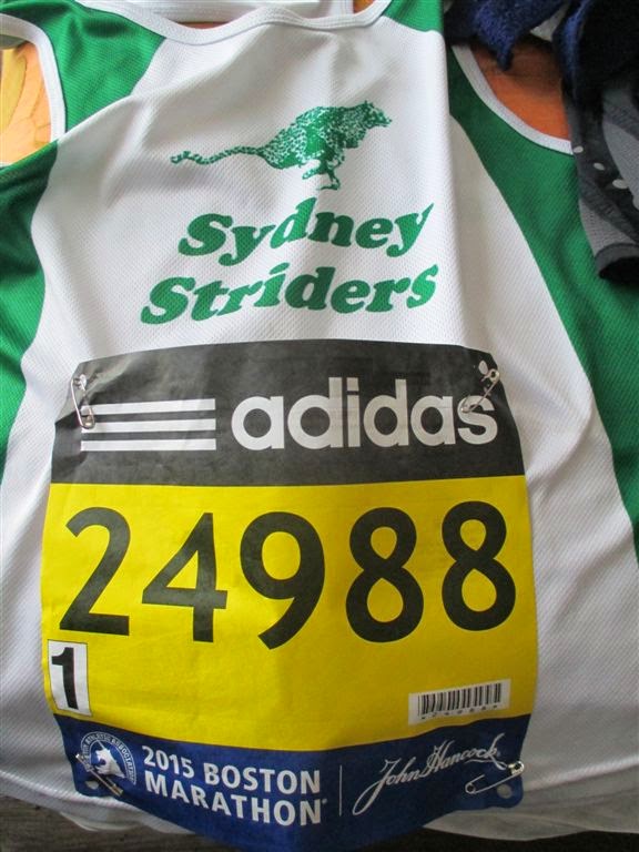 Weather is really nice today…cold but sunny. Would have been perfect for running. But alas no it will be tomorrow…predicting 9 degrees C, rain and a headwind all the way. Walked back onto Boylston street to get some more flu medication. Have not done much more, changed hotels…eating and drinking lots of water..deciding what to wear tomorrow.