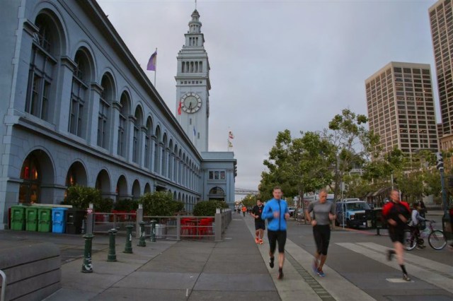 So excited to be heading home. I woke early on my departure morning and spent the early hours hoping to see the sunrise over San Francisco Bay. And it did not disappoint. It is the first morning since I’ve been here that there were clear skies without fog.  So pleased I made the effort to get out before it got light.  Now I am heading back home and back into training. I have not run a step since the marathon but have walked plenty every day. Looking forward to breakfast with my sweetheart.