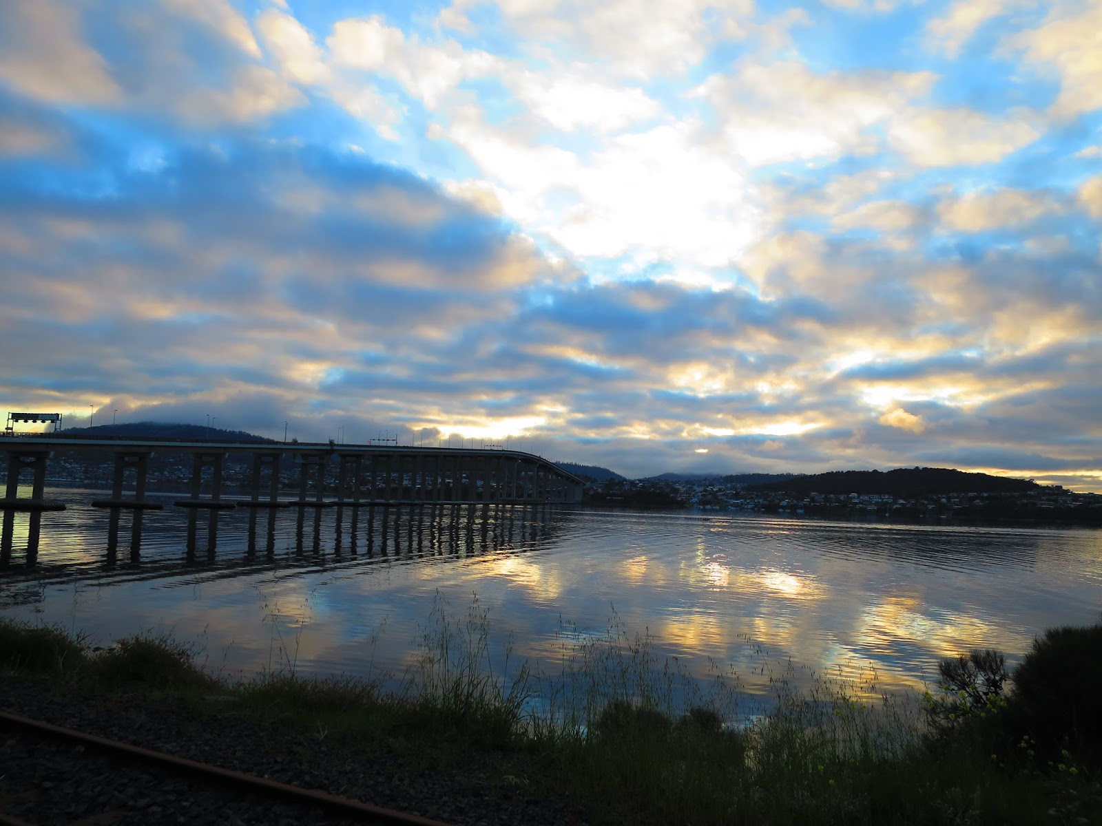 | View of sunrise over the Derwent River Bridge on my early morning run |