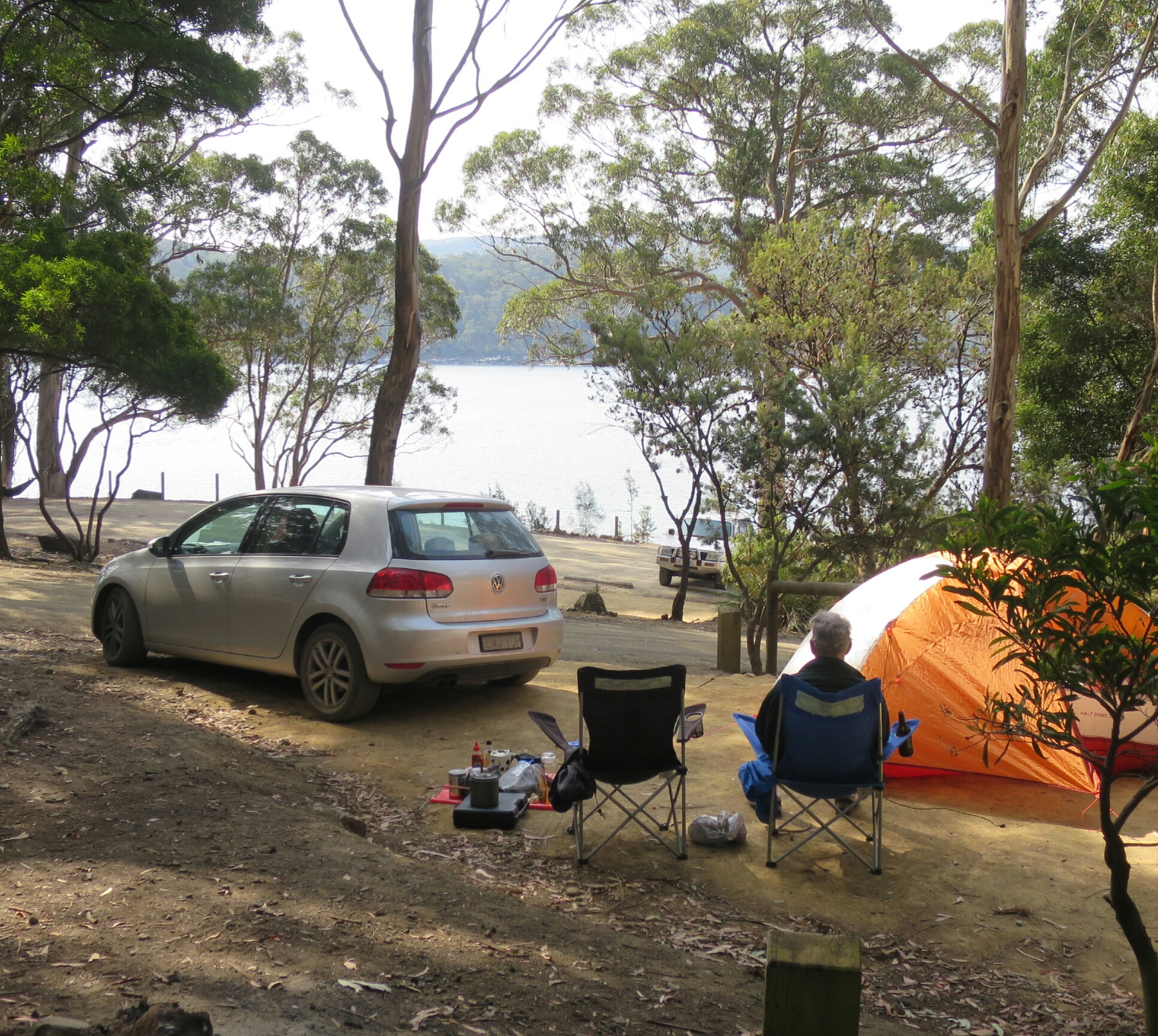 We got out of there as fast as we could the next morning. We walked out to the Cataract Gorge for a quick tour. What a great spot for a trail run and a swim afterwards. If only we had known. Soon after we hit the freeway and headed south towards Hobart. The countryside we passed was so yellow I had to keep reminding myself that we were indeed in Tasmania. Our destination today was the Tasman Peninsula National Park near Port Arthur. We were keen to camp for a bit and do some day hikes from there. The turnoff to the park was off the road to Port Arthur. And after 11km on a bumpy dirt road we landed in what looked like paradise – Fortescue Bay. Beachside campsites, not too crowded and surrounded by tall eucalyptus on one side and the most amazing blue ocean on the other side. Tent up and cold beer in hand we both sighed. …ain’t life just grand.