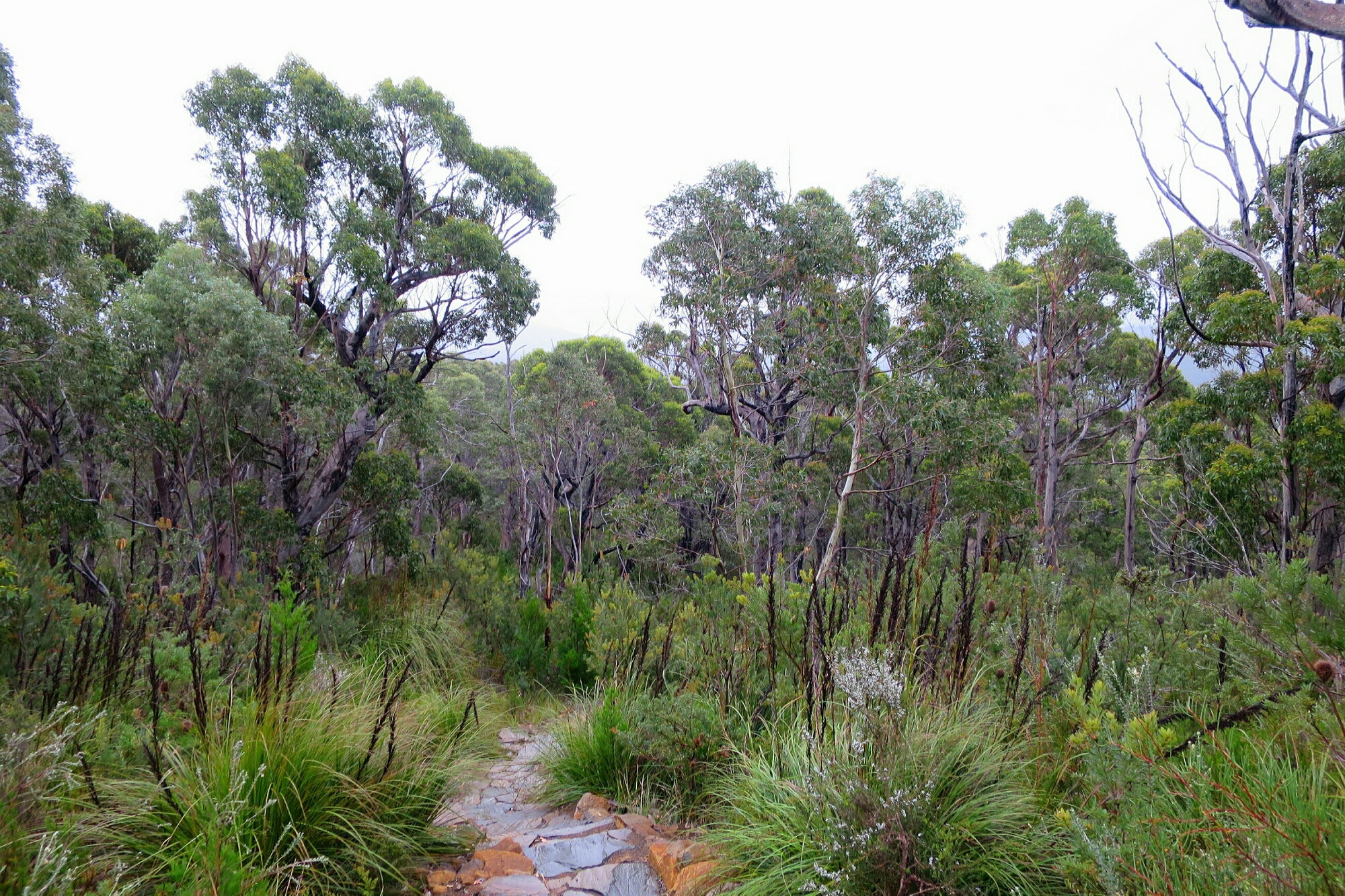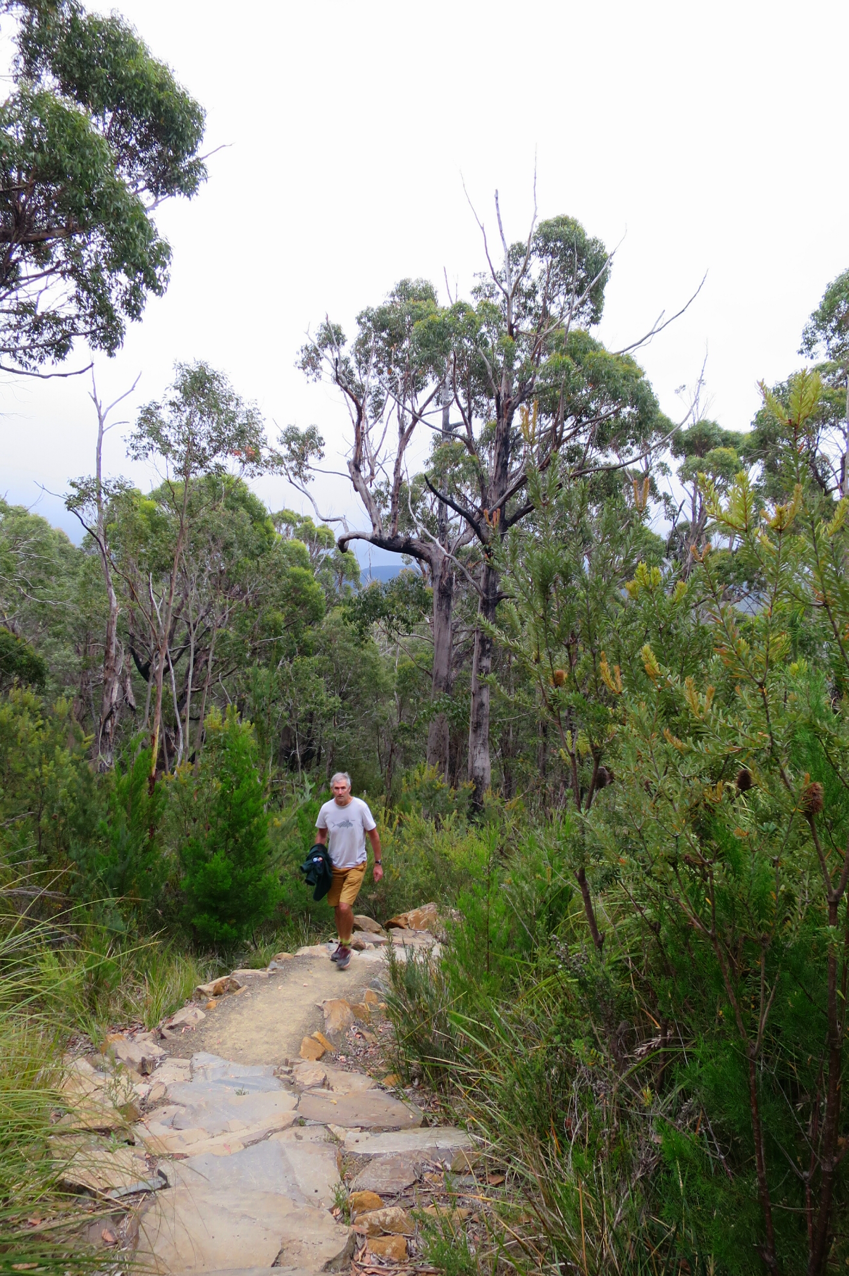 The smell of wood burning woke us up this morning. It had rained a little overnight and it was surprising that there would be a fire nearby. The sky was overcast and hazy in the distance. We were assured that the smoke had come in from fires in the north of the state. We had decided to walk to Cape Hauy, which was only 4.5km one way from the camp ground. So we did not bother changing into hiking clothes just headed out in jeans and cotton T-shirt, straight after breakfast. Boy did I regret this.