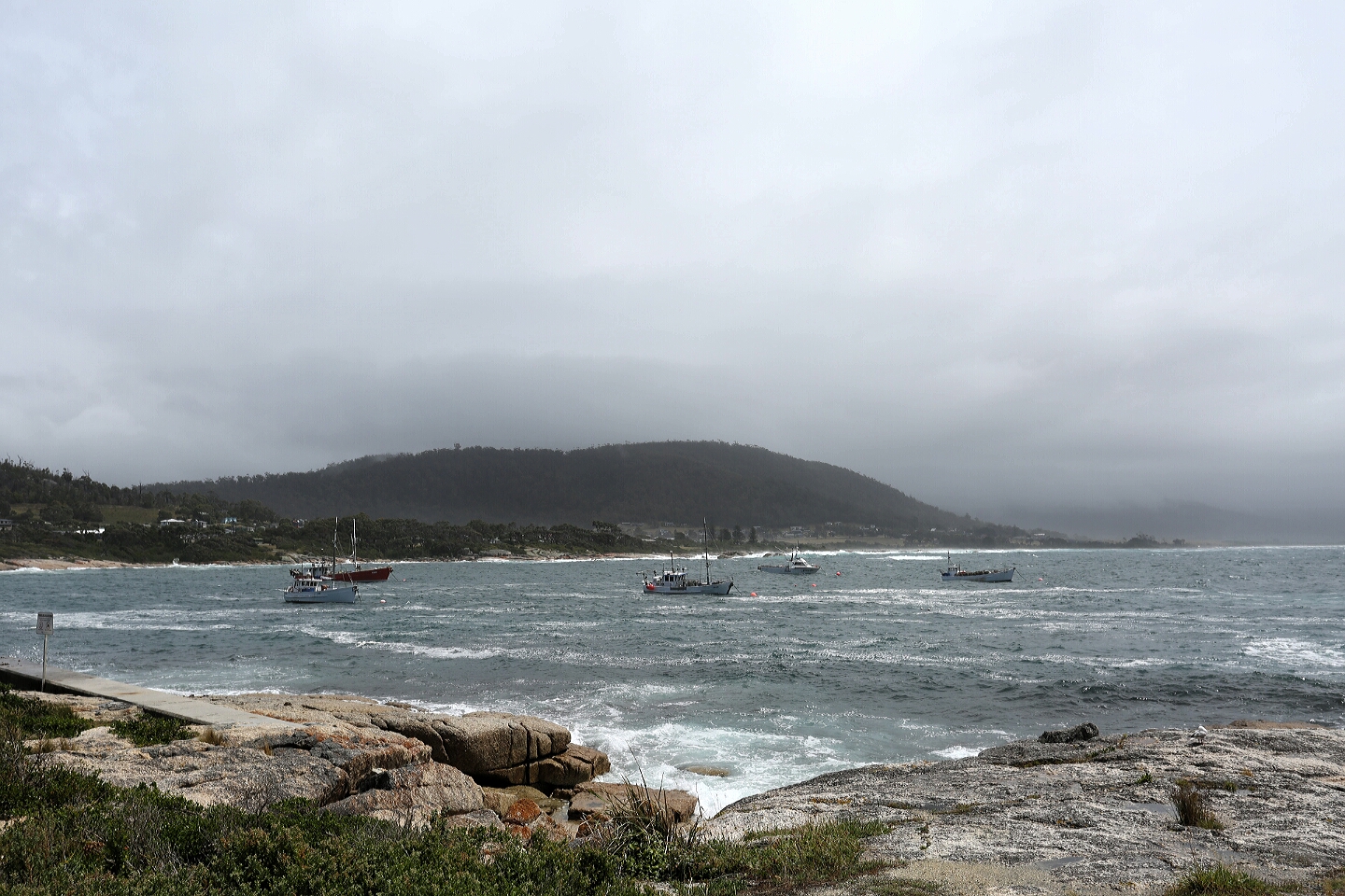 Our luck with great weather in Tasmania has run out. Rain has arrived on the east coast just as the holiday season was ending and most of the mainland visitors were leaving the island. We had planned to do a leisurely tour of the East coast in this period and then head over to hike in the Walls of Jerusalem NP. But out of control bush fires are still burning in areas of the north and northwest of the state so the Walls of Jerusalem park is closed to visitors. And in the beachy east coast of the state it is raining and will continue to do so for at least a week.