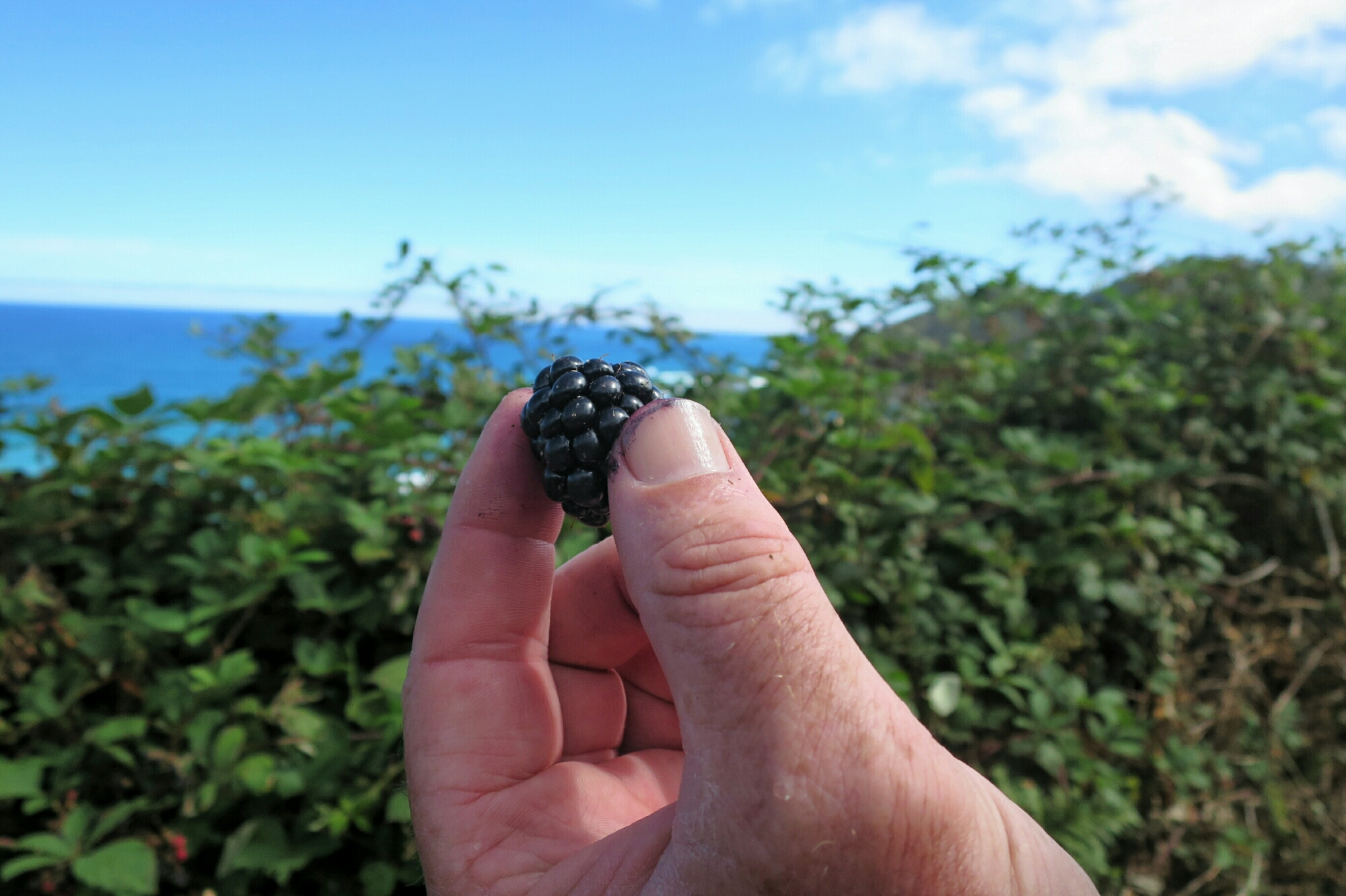 From here we descended a dirt road to the very stunning Milanesia Beach. It was warm, the sun was shining and Hammer decided that he must swim in the ocean. We had another short break here for a swim before beginning the long and bloody hard slog to our campspot at Ryans Den about 8 kilometres away. The afternoon shadows were lengthening but it did not deter us from lingering even longer on the track out of Milanesia Beach picking the most delicious wild blackberries. They were sweet and still warm from the sun. It was a case of just one more as we walked past the berry laden bushes and then we go. Life is pretty sweet. Finally we just had to stop looking at them if we were to make our campsite by nightfall.