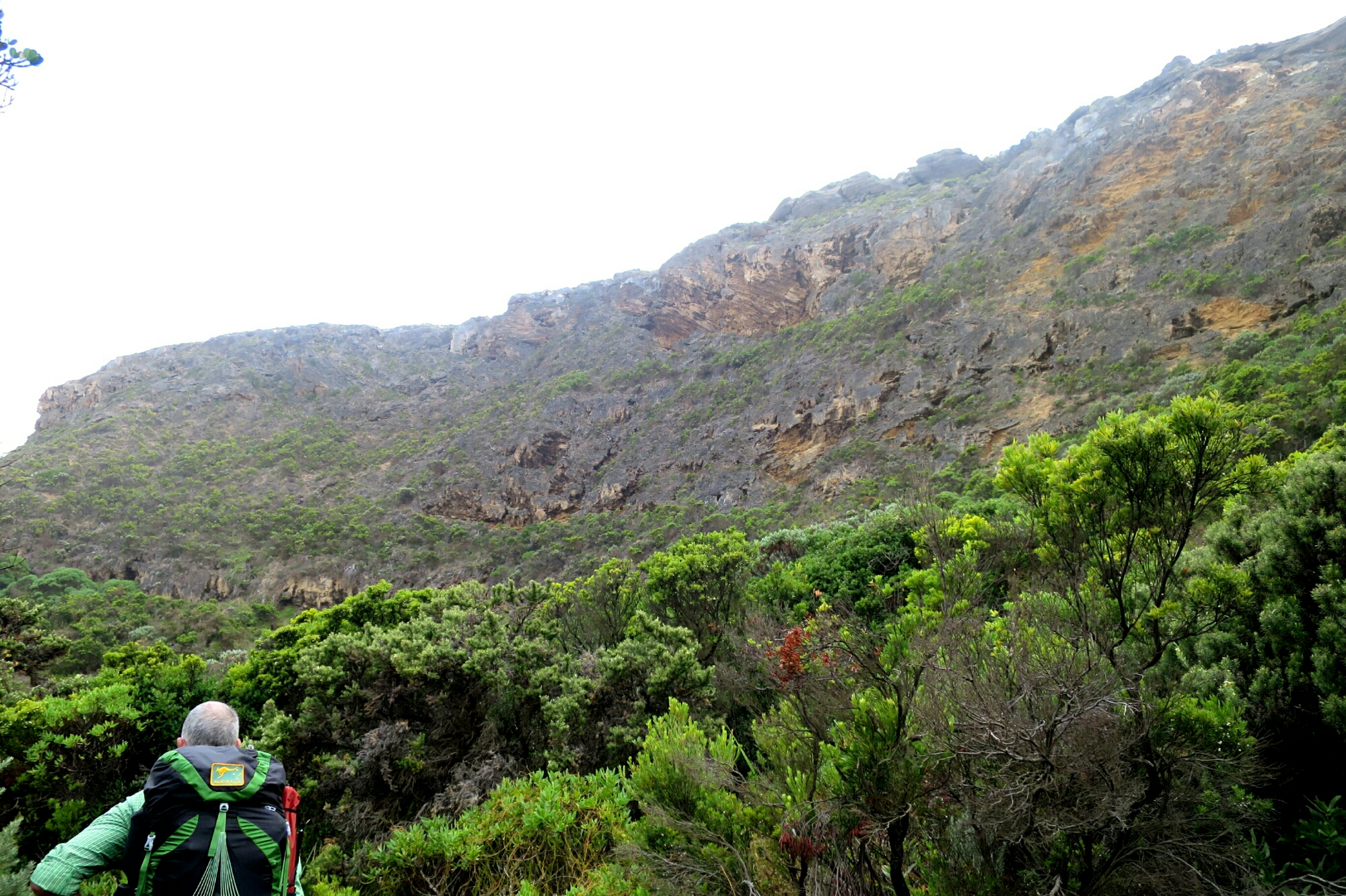 For the next couple of hours we followed the clifftop with coastal views towards Rotten Point. Just before the Point was Dinausaur Cove, a famous archaeological site where dinosaur fossils were discovered. Hammer was very excited as he covers the evolutionary history of this site in his lessons. He has watched Australian Time Traveller numerous times. It is a documentary about the evolution of Australian flora and fauna featuring this site. No chance of getting down to have a look as the site is surrounded by imposing cliffs.