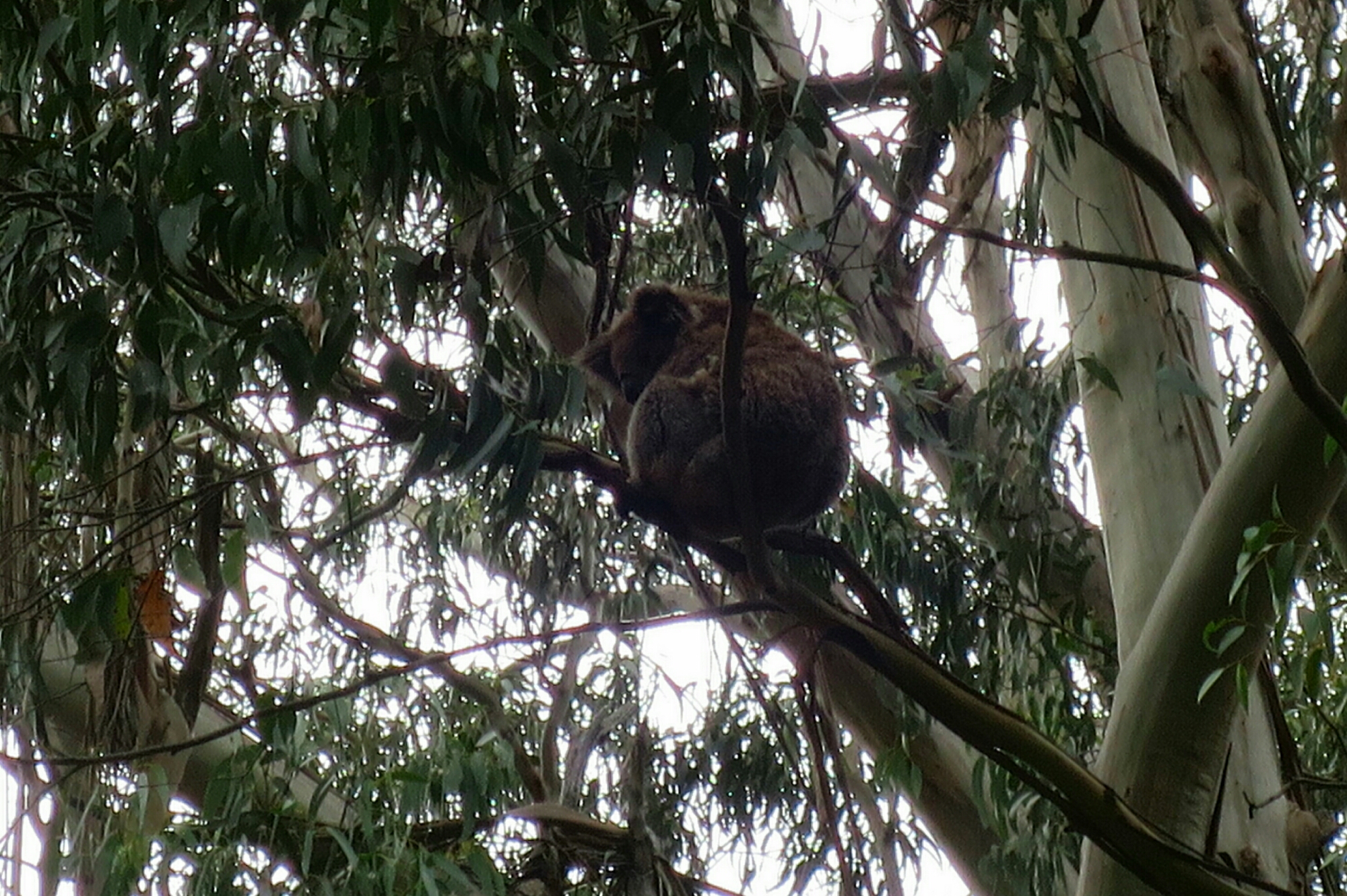 We were walking along absorbed in our solitary revery when we were assaulted by the shrieking of what sounded like a charging rhino. Looking around we couldn’t see anything. It was when we looked up that we noticed, about 15km up a tree, a very beefy looking koala. Wowser, I have only ever seen one koala in the wild. And I would swear it was stuffed as it did not move at all. So you can imagine my surprise to see this one quite animated. Looking around we saw two other koalas on nearby trees. The shrill shrieking was a mating call perhaps? We watched them for a while but they all went back to munching gum leaves.