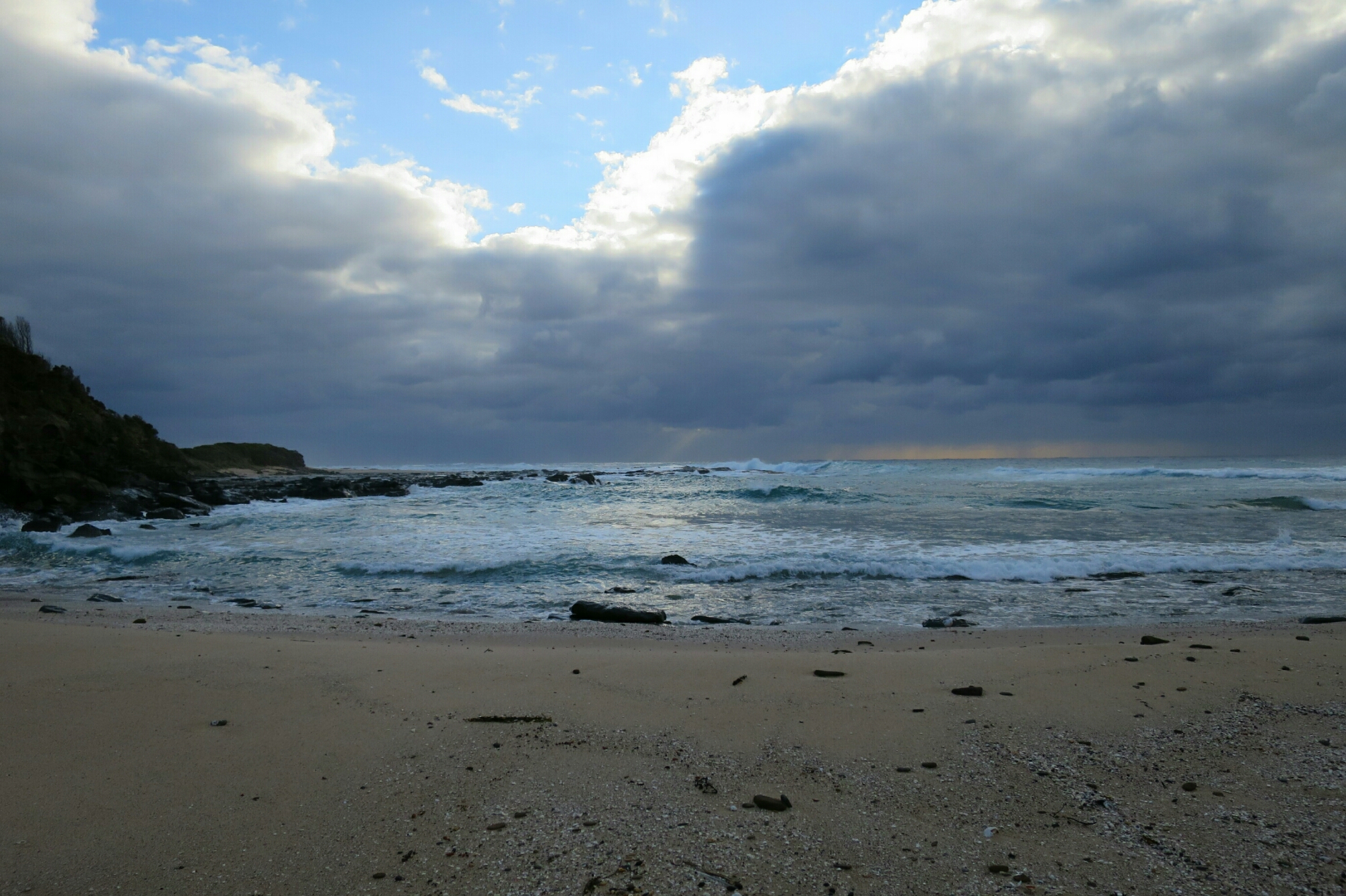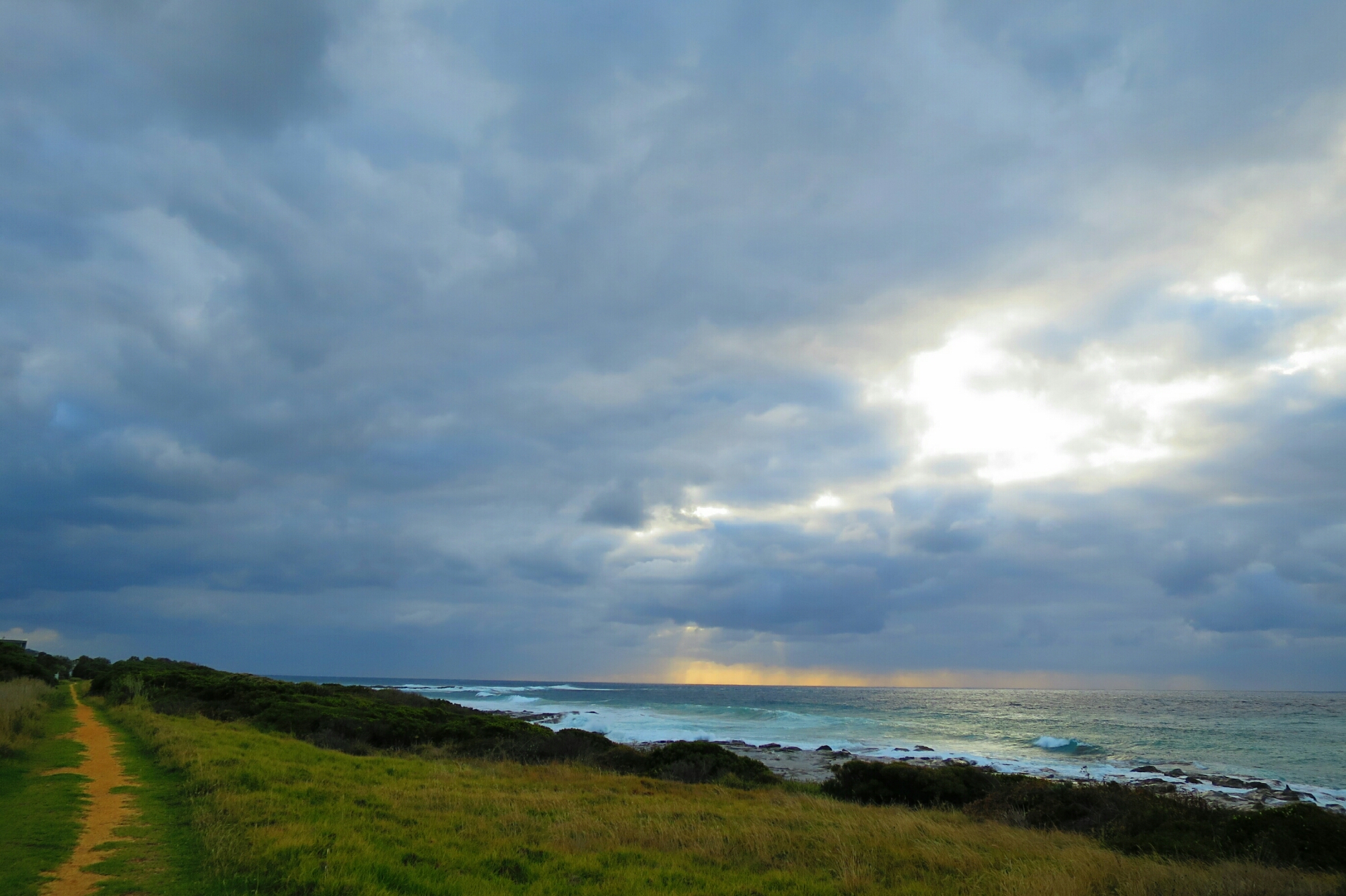 The wind was howling, it was still dark and the the clouds looked dark and threatening. The sky was an inky blue when we left our accomodation to start hiking the 100km long Great Ocean Walk. Showers were predicted for most of the day. Not perfect conditions but we were super keen to get hiking again. After the obligatory photos at the start near the tourist information office we were on our way.