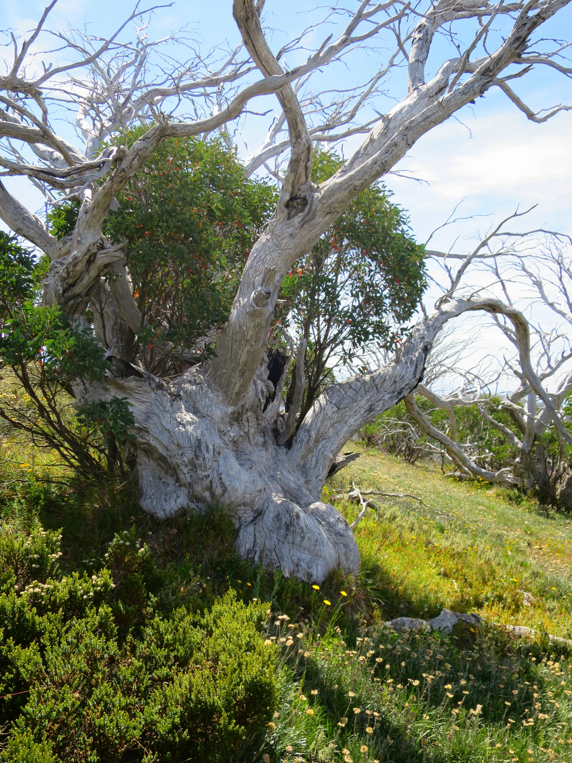 We started walking from the base of Mt Bogong at Mountain Creek campground near Tawonga. The climb up Mt Bogong is a brute. It has 1400m in elevation gain over 9km. The morning air was cool, we were fresh and the climbing seemed easy despite our fully loaded packs. In a bit over three hours we reached the summit of Bogong. Lou-Seal was thrilled to bag another peak.