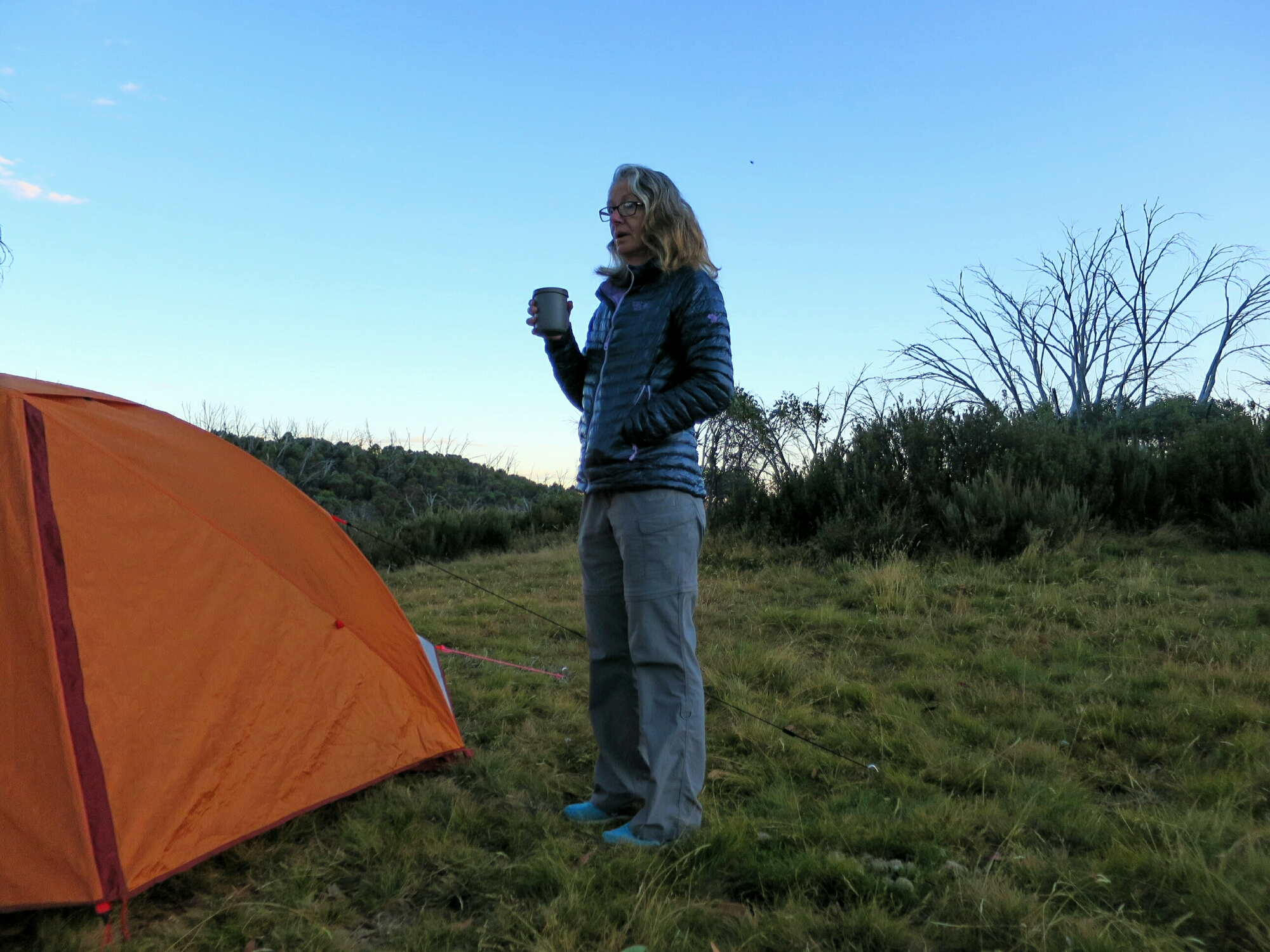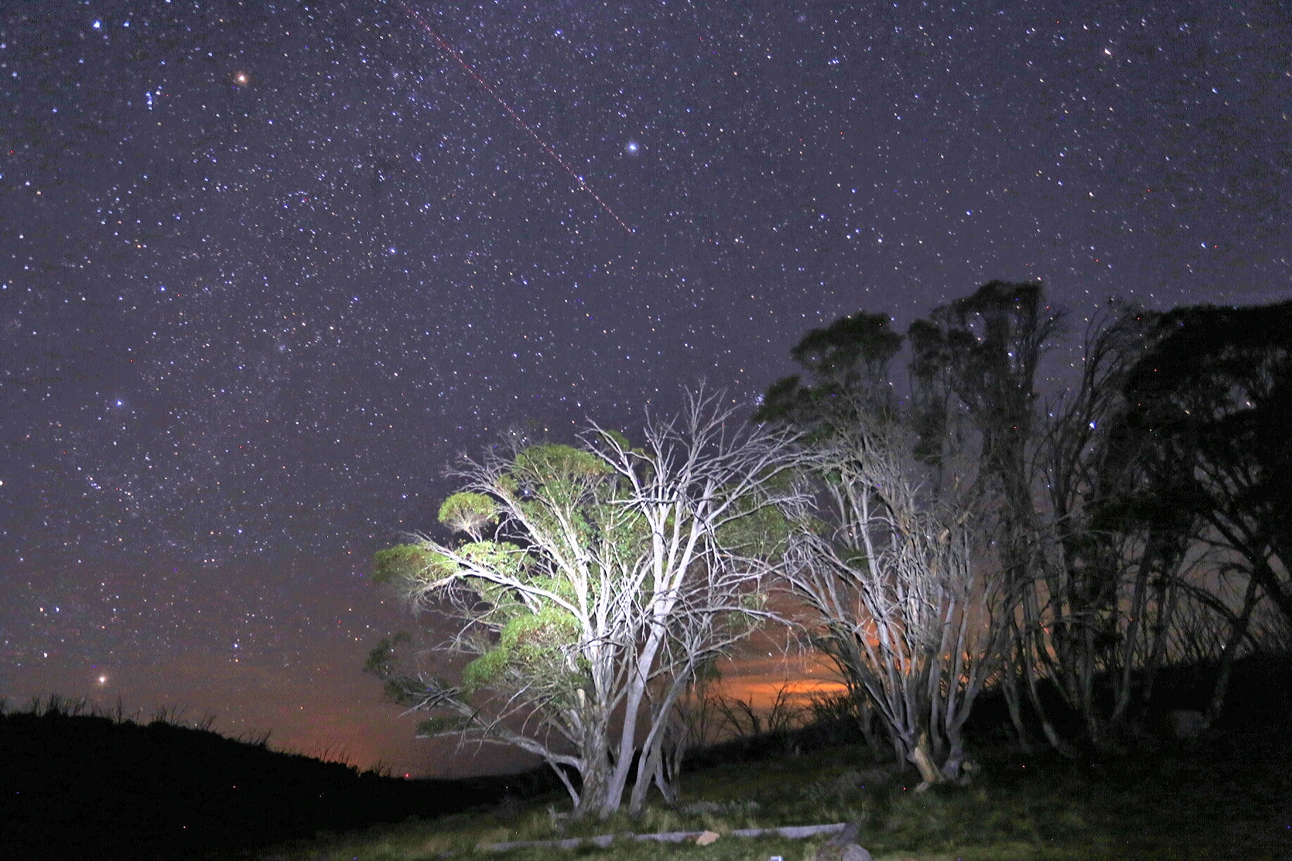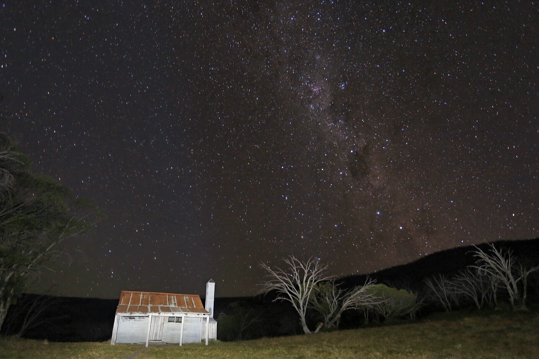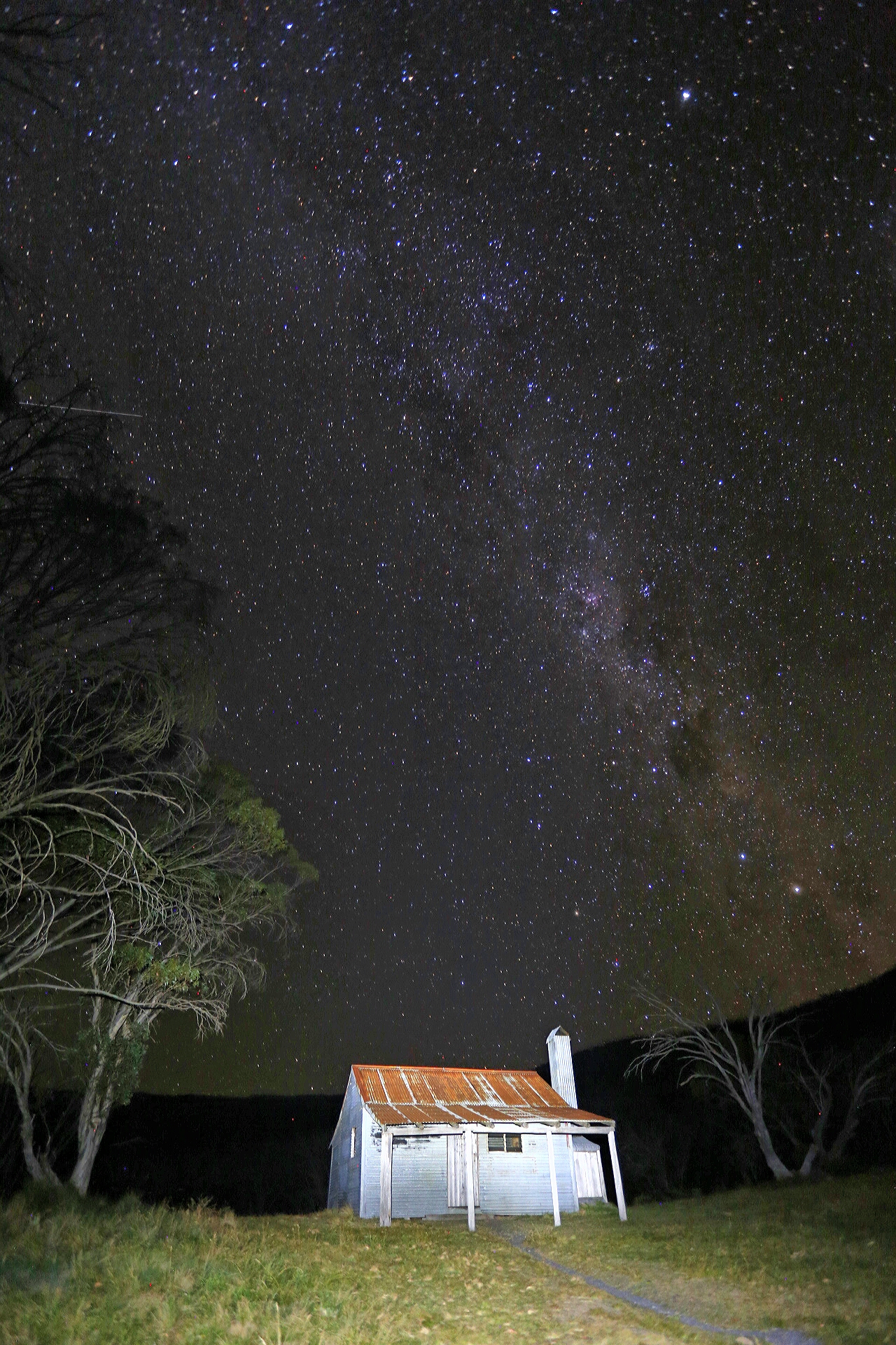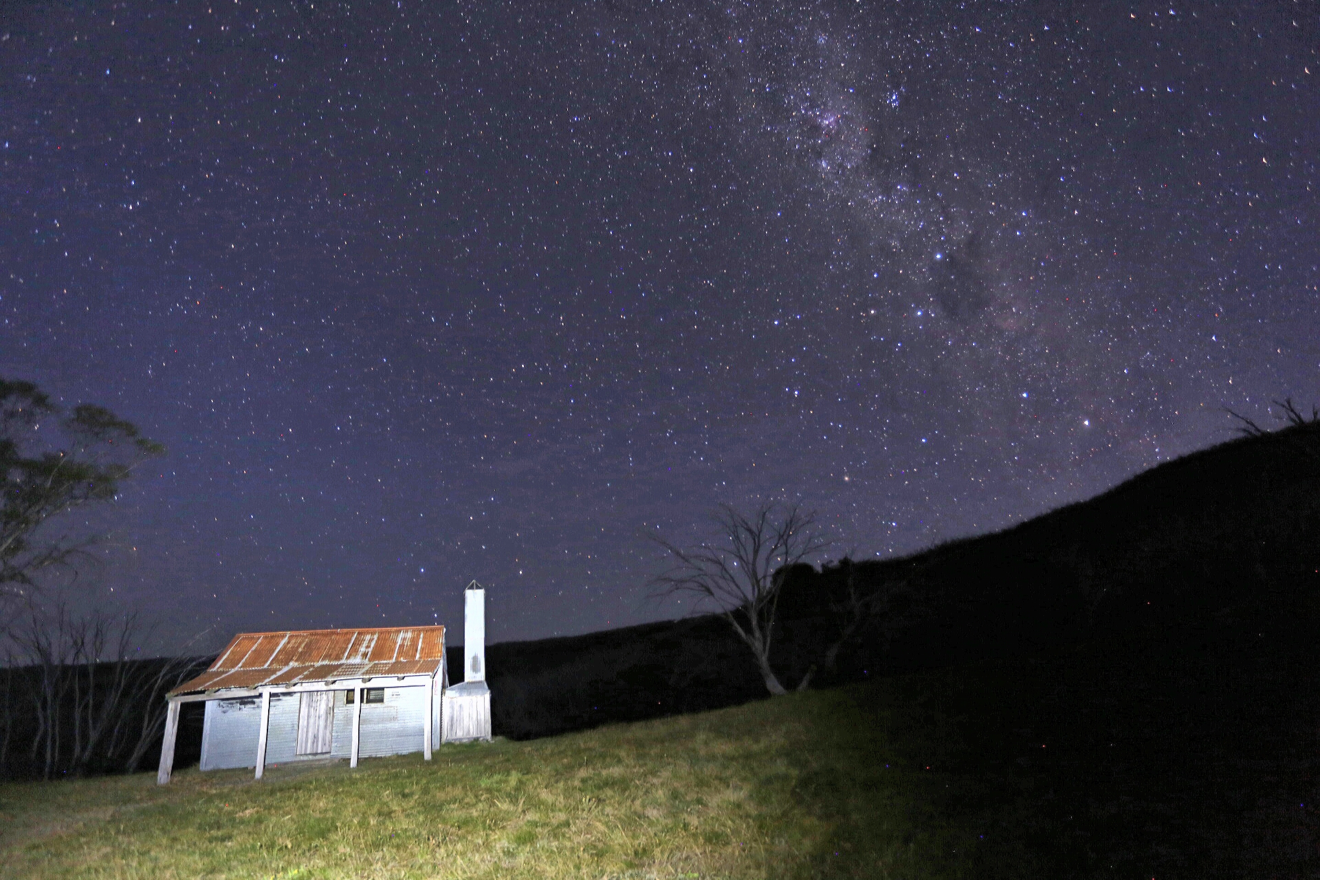 A clear star filled night made for some nice night time photography. The first time in weeks I was awake when the stars came out. Hammer was asleep, there was no wind,it was so silent and still. I felt like I was being absorbed by the stars. The spirit of the old time stockmen was alive in the old tin hut. I imagined what it must have been like for them when they were droving cattle through these high mountain passes. To remind me that I was not that far from civilisation and Canberra, the silence of the night was broken occasionally by aircraft flying overhead. It was such a beautiful night I wanted to stay up all night letting my imagination roam, getting lost in the stillness and the blanket of stars.