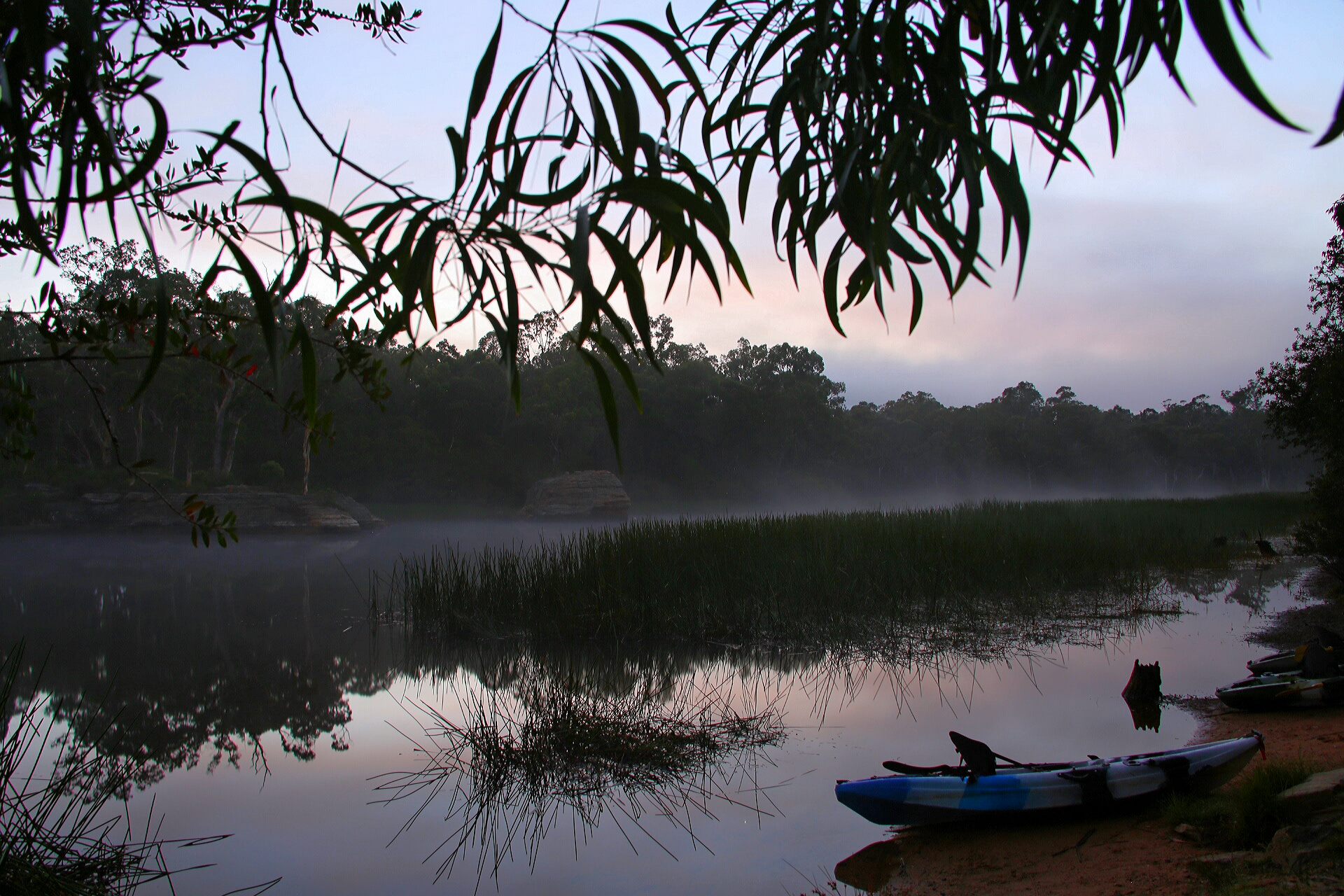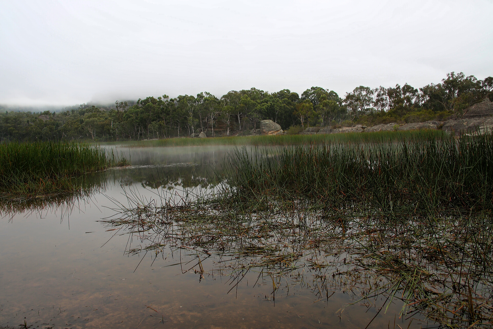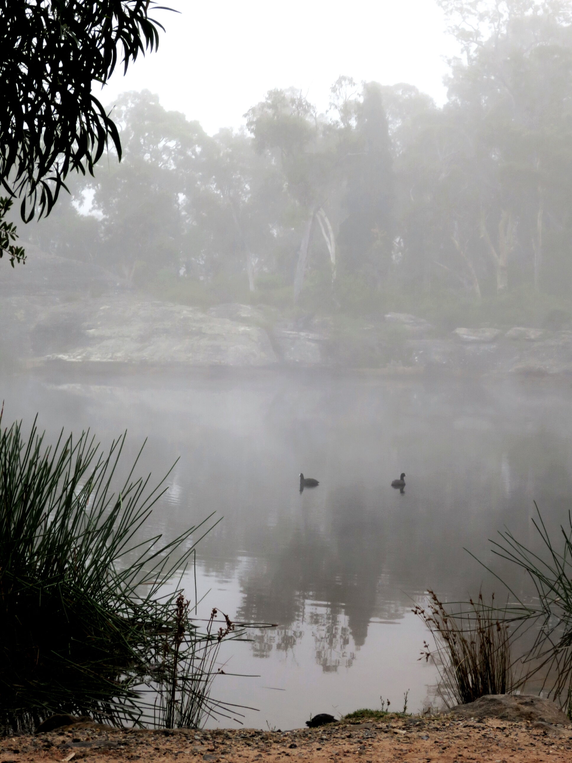 The Swamp itself is really misnamed as it is a lovely waterway, surrounded by amazingly shaped sandstone formations. It would be a great spot to explore on a canoe. Our neighbours partied till 1am keeping us awake for much of the time. I got up well before sunrise to take some photos of the surroundings. But the weather did not cooperate, overcast sky and fog filled valley. I was keen to get going before the morning silence was broken.