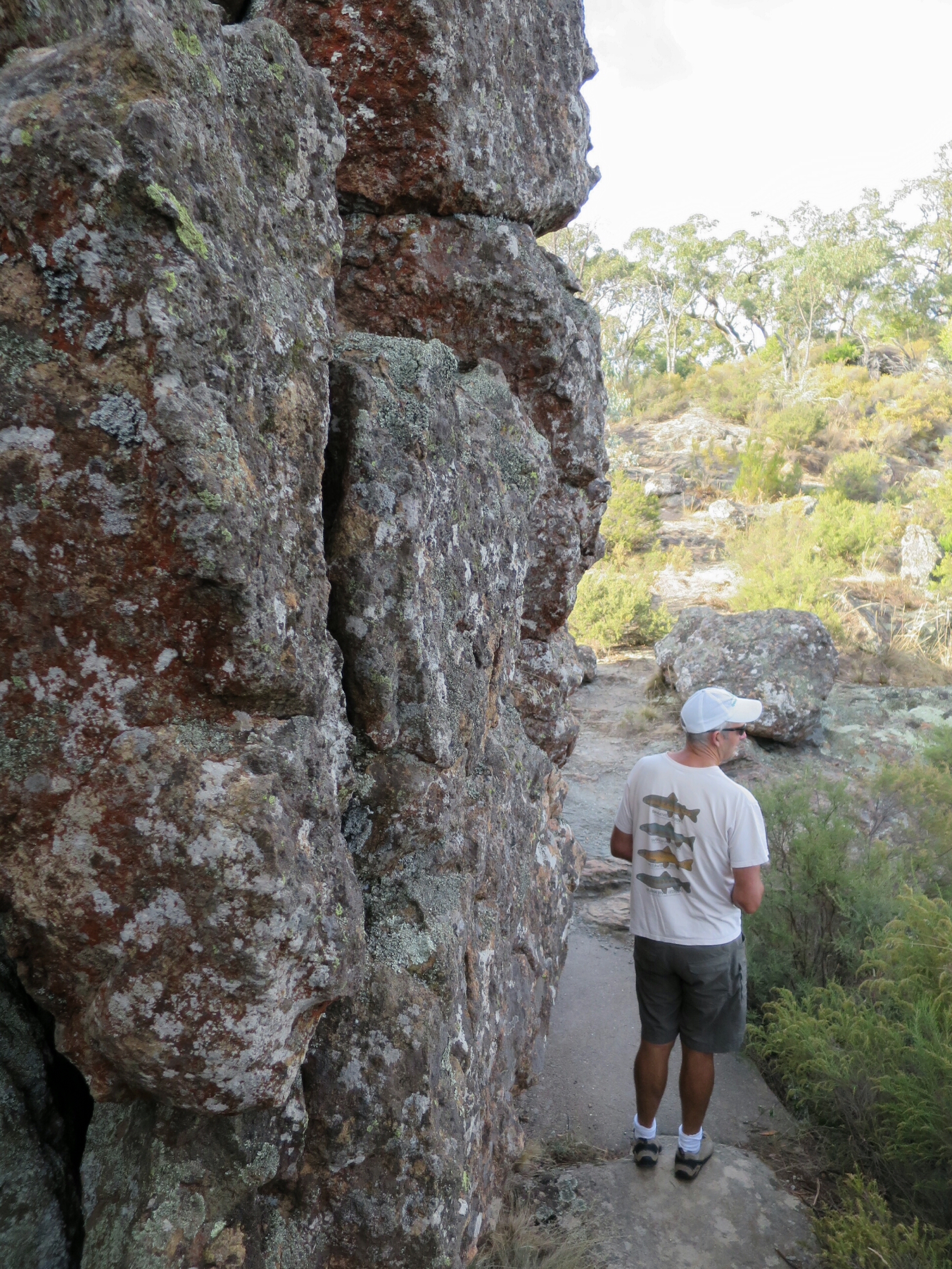 Soon we left the cool mountain air behind as we headed north and started to enter the furnace of country NSW passing through Tumut, Gundagai, Yass, Cowra and Canowindra before stopping for the night at Hopetown Falls in Mt Canobolas State Recreation Area, just outside of Orange. The temperature peaked at 40 degrees in Cowra. It was simply too hot to step out of the car, so no visit to the war graves. By the time we arrived at Mt Canobolas I the early evening, the temperature dropped and the rain arrived. We shared the campsite with a group of young French speakers who were in town to pick fruit.
