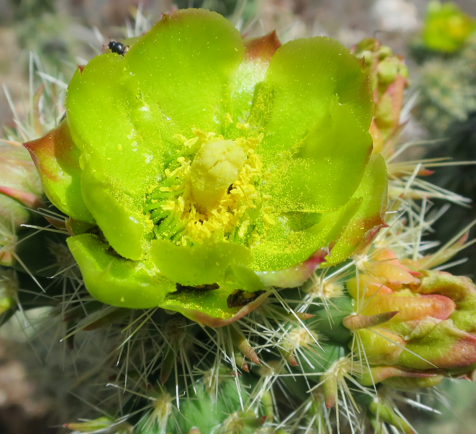 The vegetation on the ridges provided little shelter or visual respite from the unrelenting wind. We hiked with the wind for almost half a day. Feeling wind blasted we eventually started to descent and wind our way down into the valley towards the riad thst keads to the town of Julian. And here the day suddenly started to feel a lot brighter. The wind eased and flowers returned. And I saw my first flowering cactus in the desert. And of course I had to stop for each one, the colours were so stunning. Who would think that something so unattractive like a cactus could produce such beauty.
