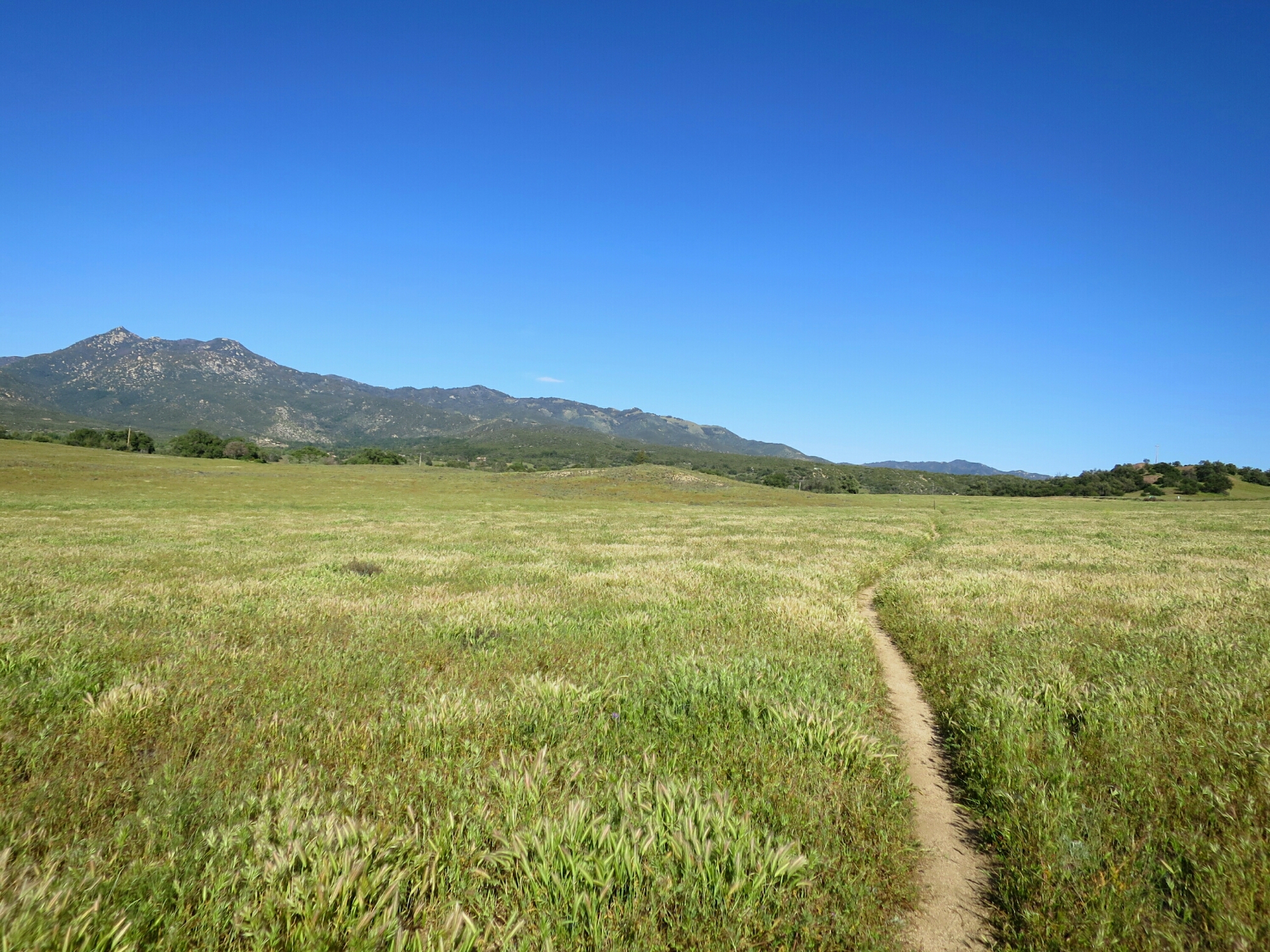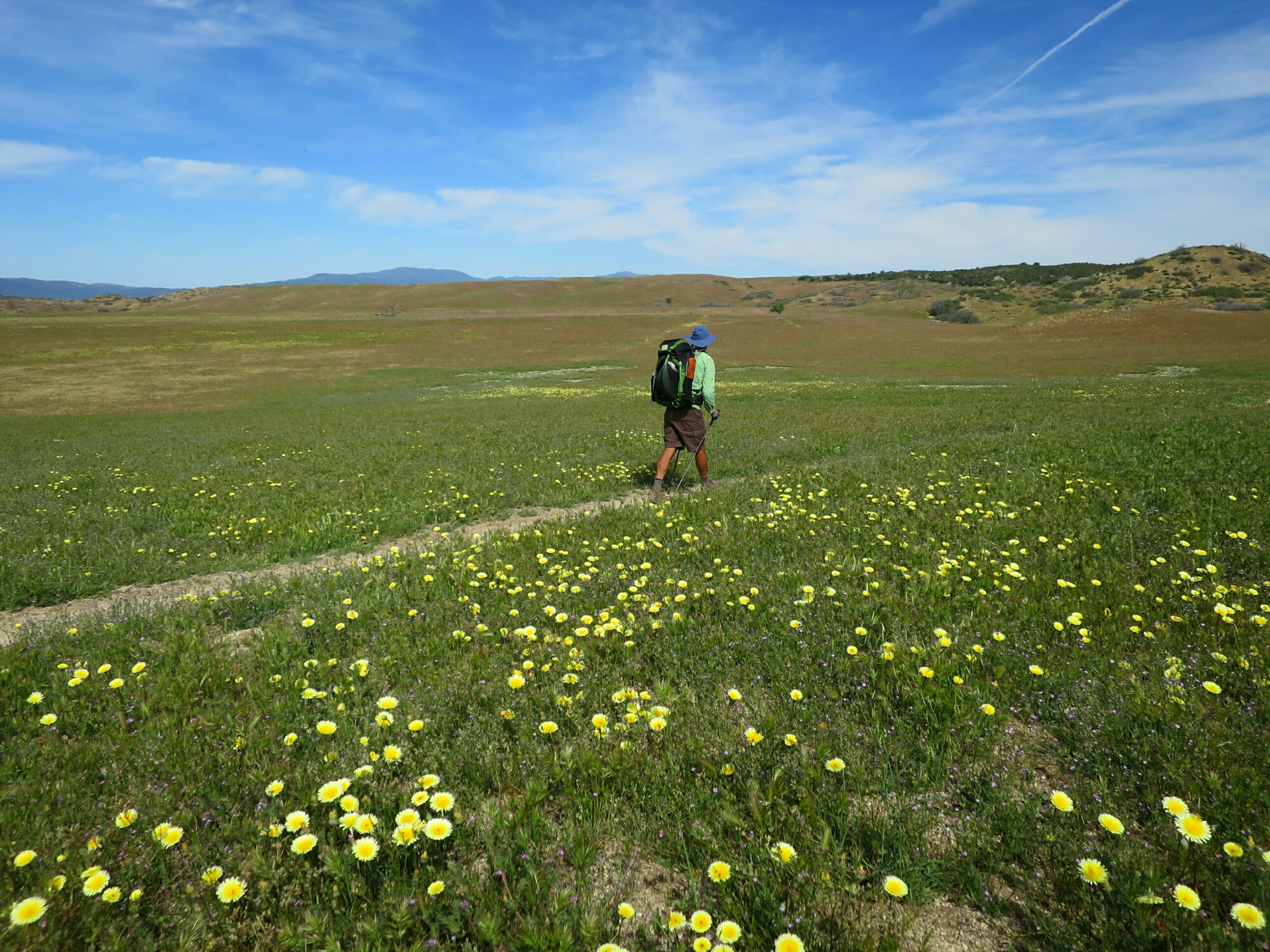 And when we hit the rolling meadow it was absolutely delightful hiking in lush pastureland. Bright yellow and orange wildflowers punctuated the expanse of the green grass. It was so beautiful I was tempted to roll around in the field but there was still plenty of hiking to do before we reached our lunchtime destination. We were stopping for a bit in Warner Springs to recharge our batteries and resupply with food before heading back out.