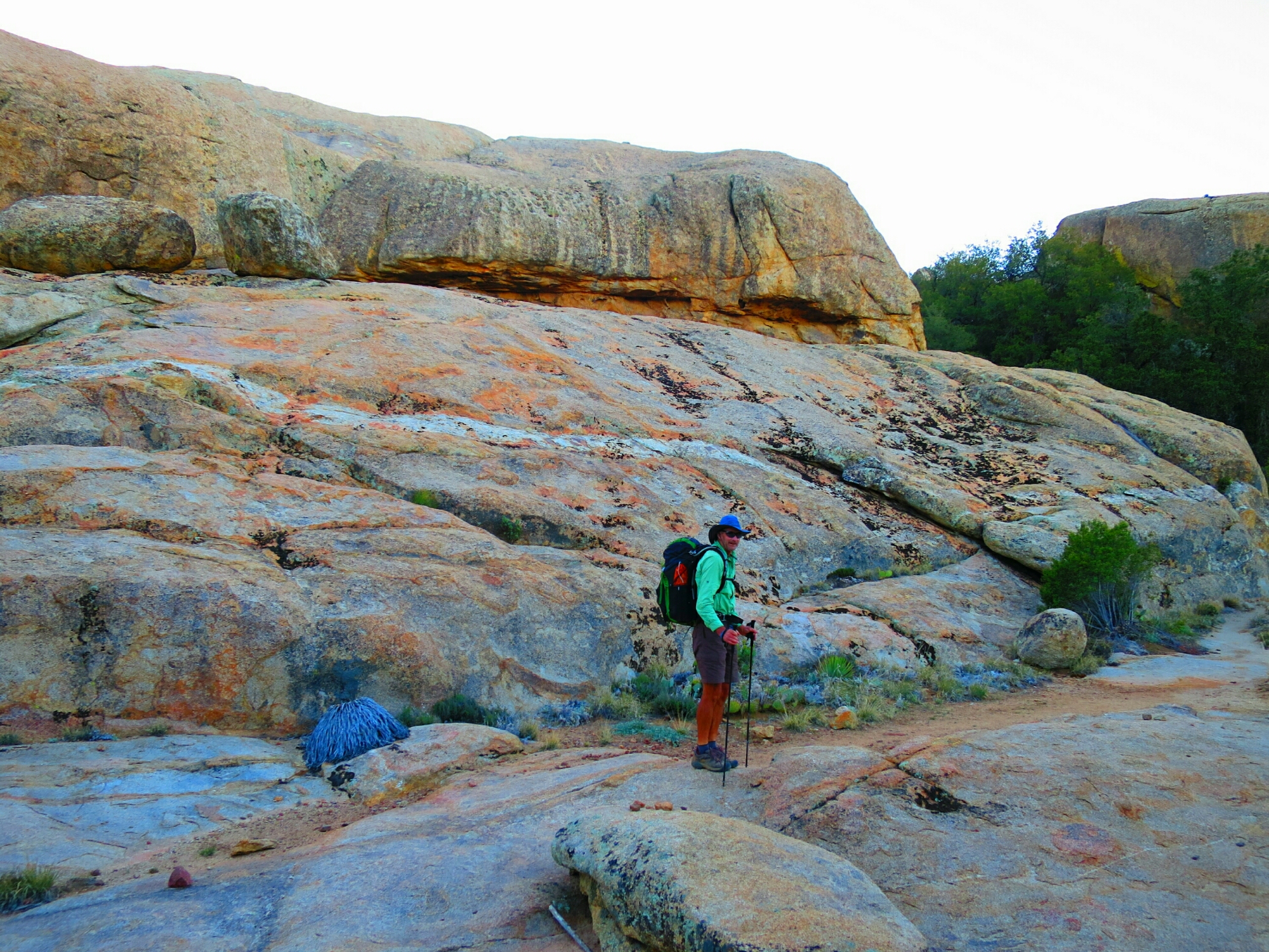 The walk back to Highway 74 from mile 155 was fantastic. The warm glow of the sunrise was reflecting off the sandstone turning the landscape into a pink hew. We passed a couple of trail runners heading out for their morning run. How fortunate they are to have this on their doorstep.
