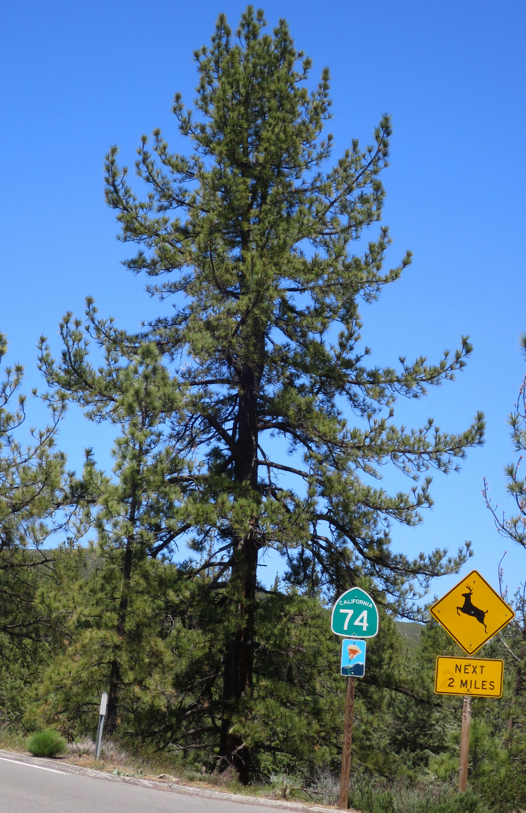 It has been hard to decide which route to take to get to Idyllwild since a section of the trail that passes near it, is closed due to a fire in 2013. The area is still recovering and revegetating. Hikers were advised not go beyond mile 152 at Highway 74 before checking with the latest PCT updates. An unoffical alernative has been published. But there were several alternatives. The one I know we would not be choosing was to hitch into town, a distance of 17 miles from Paradise Valley Cafe. We chose our own version. We walked out to mile 155 on the PCT and camped last night then walked back south to Highway 74. From here we walked along the highway until we overlapped with the unofficial deviation route at Forbes Rd, which we then followed all the way to Idyllwild. It ended up being a lot longer walking on the road then we figured. Several cars pulled up and offered us a ride to Idyllwild but we declined. At no stage were we even tempted. We figured we signed up for a walk and that is what we will be doing. All up ended up walking 22 miles which took us 9 hours. While it was another hot day, we had a cooling breeze all day which made for very comfortable hiking conditions.