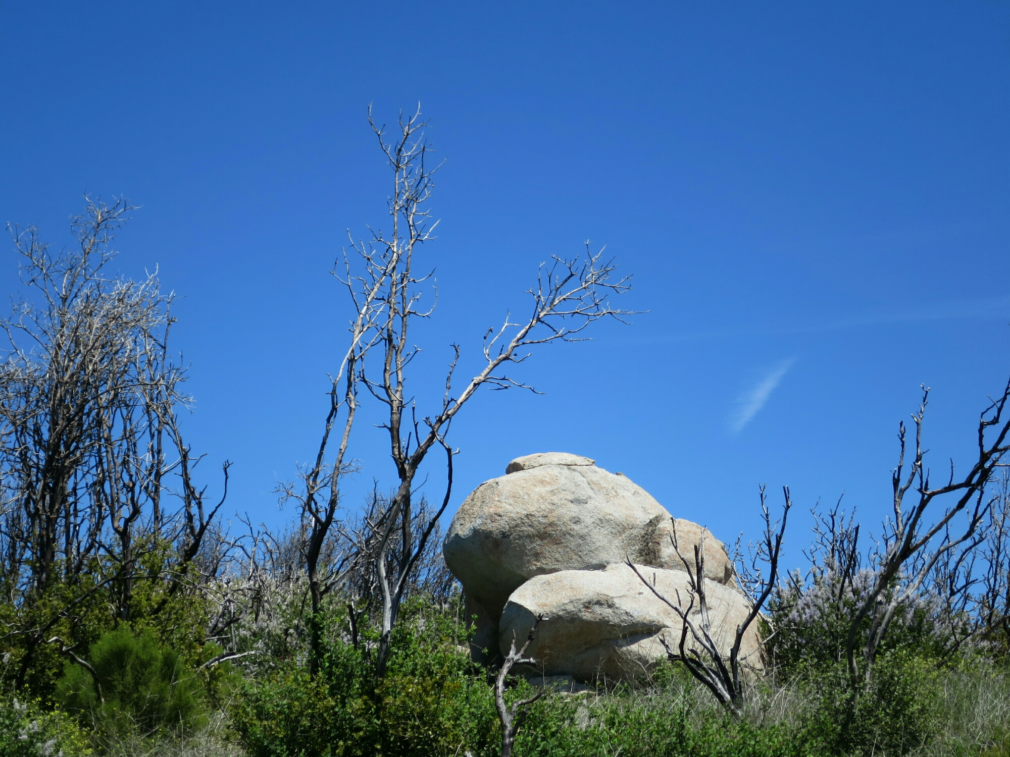 Getting off the Highway could not come soon enough. Once we were back on a trail we started to ascend gradually. We passed another burnt. The trail was a narrow corridor through the burnt area. Above the burnt section, the forest was springing into life. After seeing so much burnt vegetation it was beautiful to see the contrast of budding leaves on trees just starting to open up.