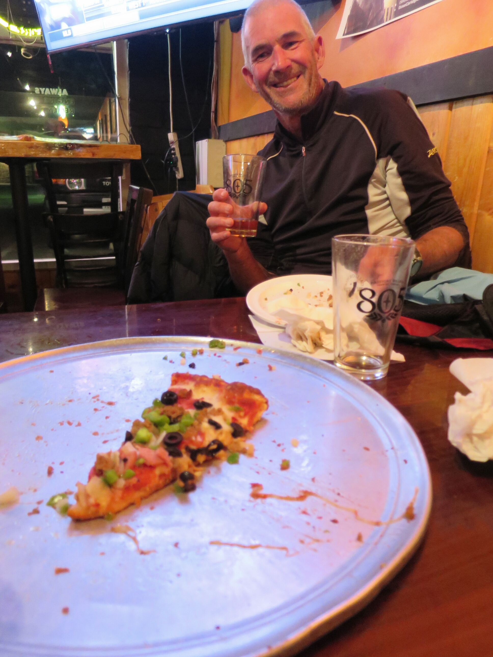 On reaching the paved roads on the outskirts of Idyllwild we felt a certain sense of achievement. A milestone we were so looking forward to. Unfortunately for us almost everything in town was booked out for this weekend. We found out that there is a music festival this weekend being held in nearby Palm Desert. Coachella is the largest music festival in the US. So rather then the luxury of our own hotel room and an endless shower, we are camping at a bargain price of $3 each and $1 for a 4 minute shower at a local State Park. Even so, our first shower in 10 days was damn nice. Even nicer was the 16″ pizza we devoured later in the evening. A full rest day tomorrow, yipee.