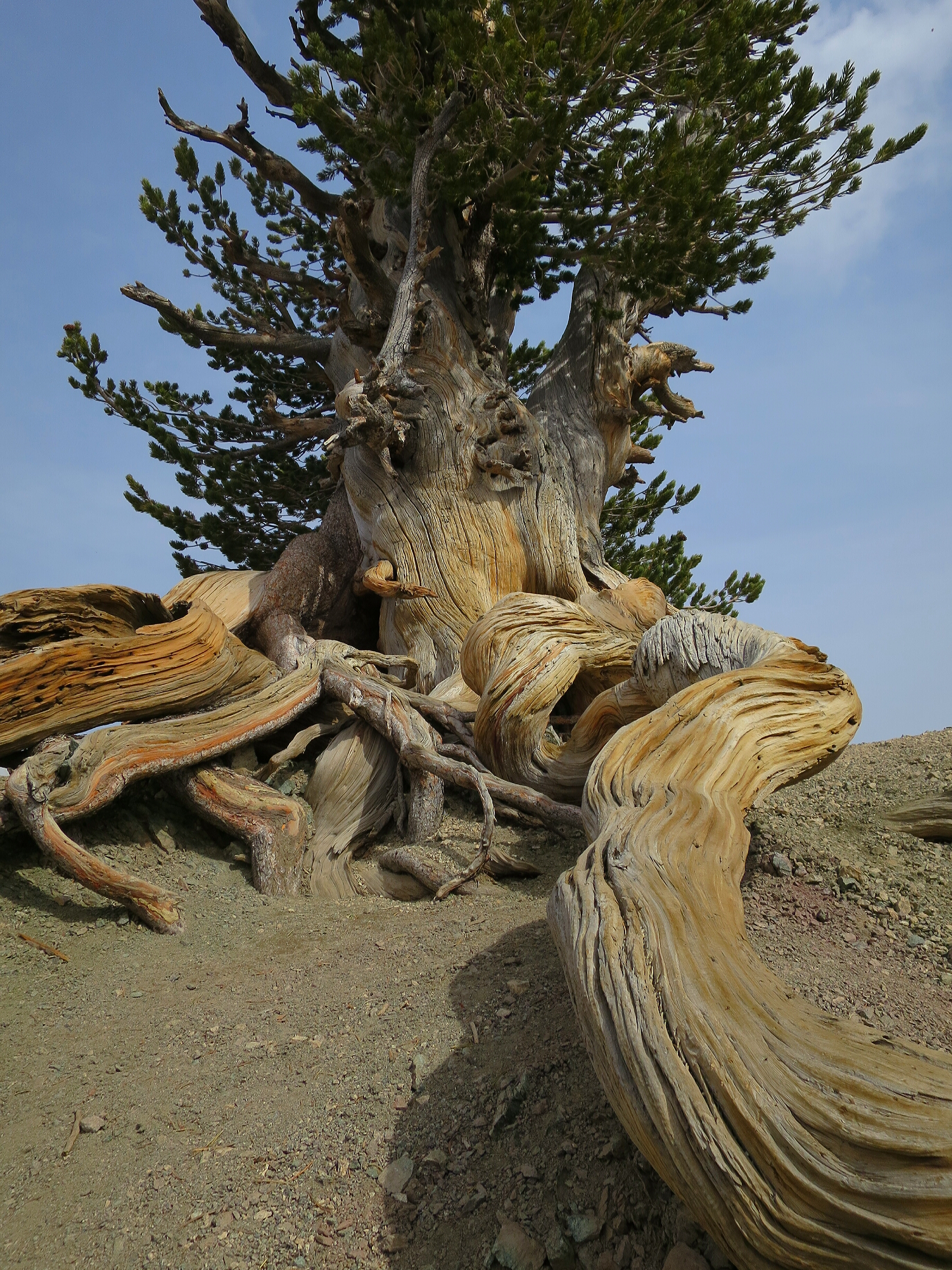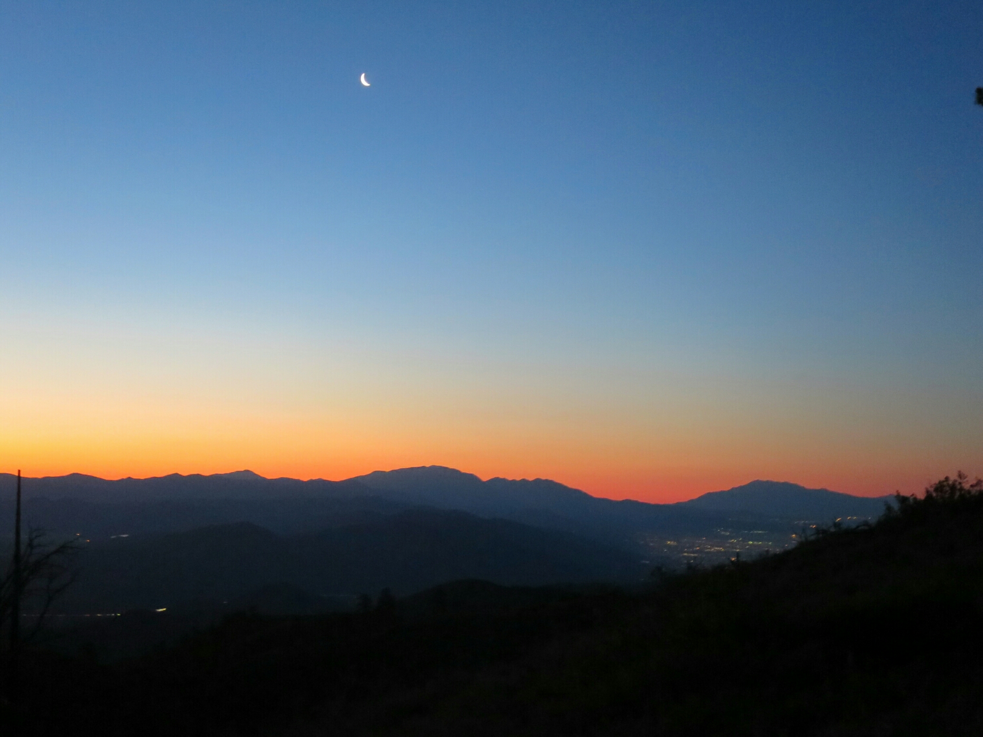 We were restored by a blissful nights sleep. I woke at 5am and there was hardly a breath of wind outside. We were camped under some pine trees, it was so quite and peaceful. Off in the distance of the valley below where we were camped, the early red glow of the sunrise was illumination the sky. Lights of a distant town and the I-15 could be seen in the valley floor. We did not notice the town when we stopped last night. This would have been a perfect location for some night-time photography.
