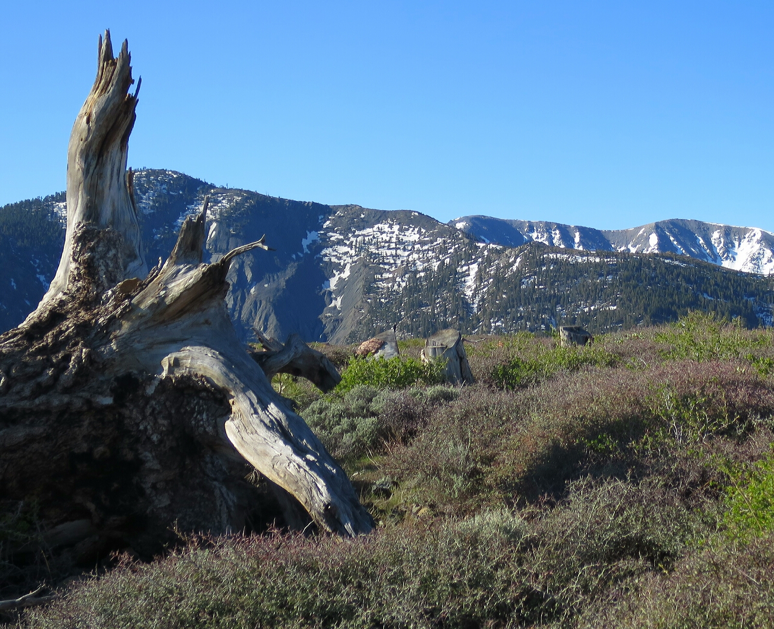 From here we had some real work to do, a 5 mile uphill hike to the summit of Mt Baden-Powell which stands at 9, 399 feet. The first section of the hike up to the summit was relatively easy terrain passing through the most beautifully scented pine forest. After the Highway 28 crossing the trail went straight up through numerous switchback. It was hard work and then it got harder as we hit snow and the trail disappeared.