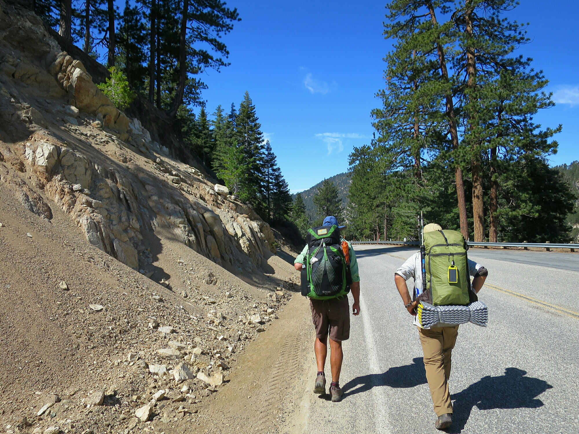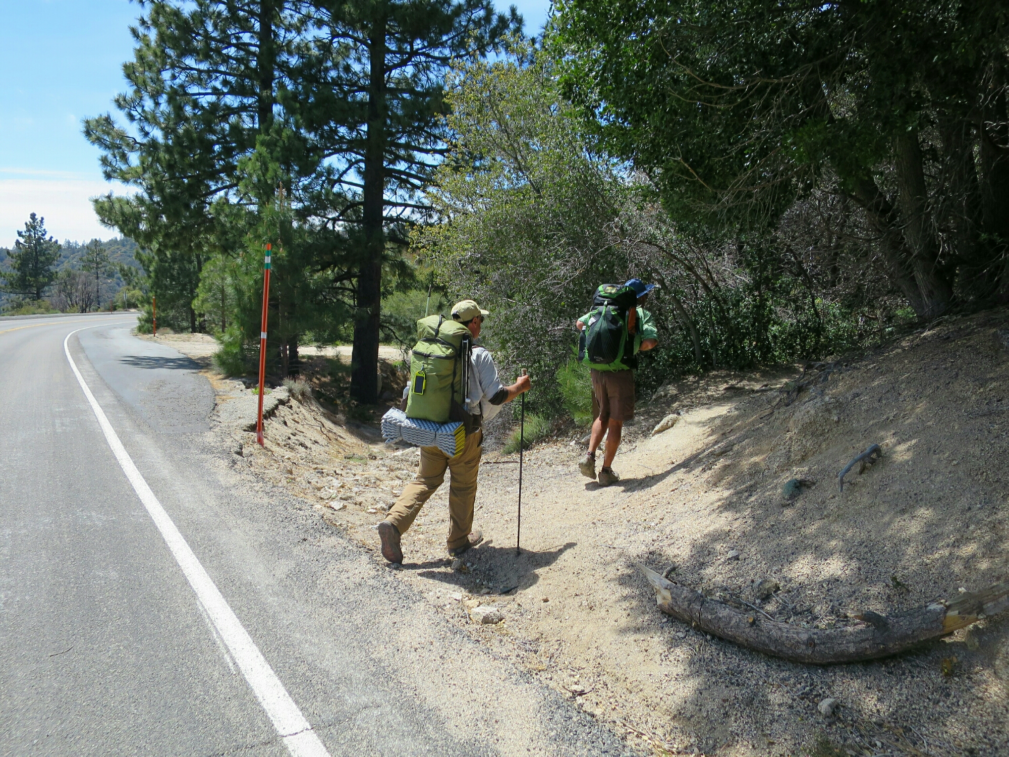We left Little Jimmy Camp pretty early. Even though we were at around 7,000 feet altitude it was not cold at all. The sun was shining and the morning hiking seemed very easy. A few miles after leaving camp we had to make a detour off the PCT due to an endangered species habitat closure of about a 3 mile section. We had a choice, we could walk a 20 mile detour or take an old alternative route which was around 5 miles and involved some road walking. We took the latter option as the section of road walking was along Highway 2 which had hardly any traffic. It has only just reopened for the summer season. It was quite a pleasant option. We were hiking with Jim and the time and distance just seem to pass in conversation.