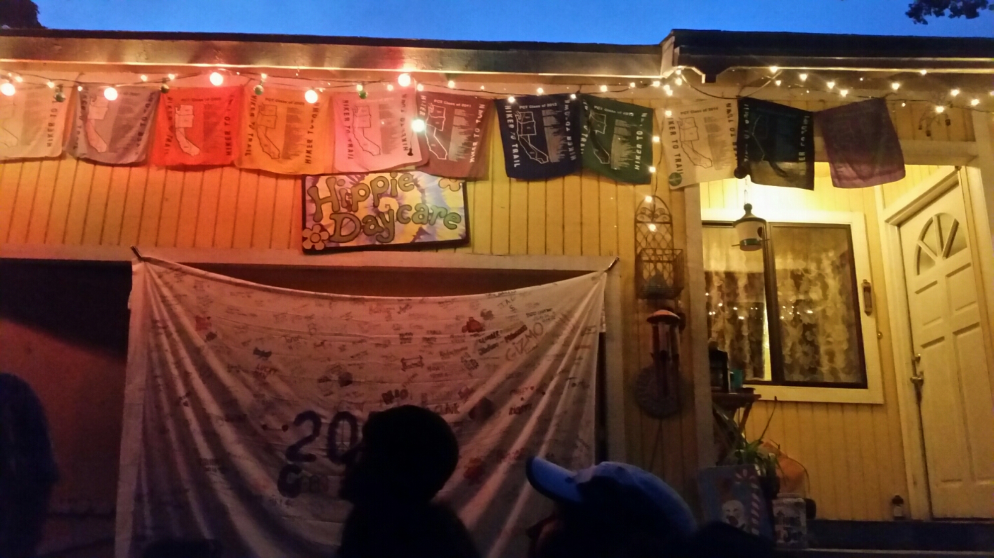 By the time we hit the paved road the wind had whipped up and it was very cold. We thought a car would stop and offer us a ride for the 2 miles to the Andersons but we had no luck. But also we did not try. Just as well we walked as we got to see the quirky little town that is Green Valley. And the Andersons house is rather unique. Not as many people as there were at Hiker Heaven and really nice atmosphere. We pitched a tent in the Manzanita forest in the backyard. It was lovely to chat to other hikers over dinner in the front yard. Just a shame it was so cold. We were back in the tent long before hiker midnight. Barking dogs of a suburban neighbourhood can be heard off in the background. So different to the silence of the mountaintop ridge.