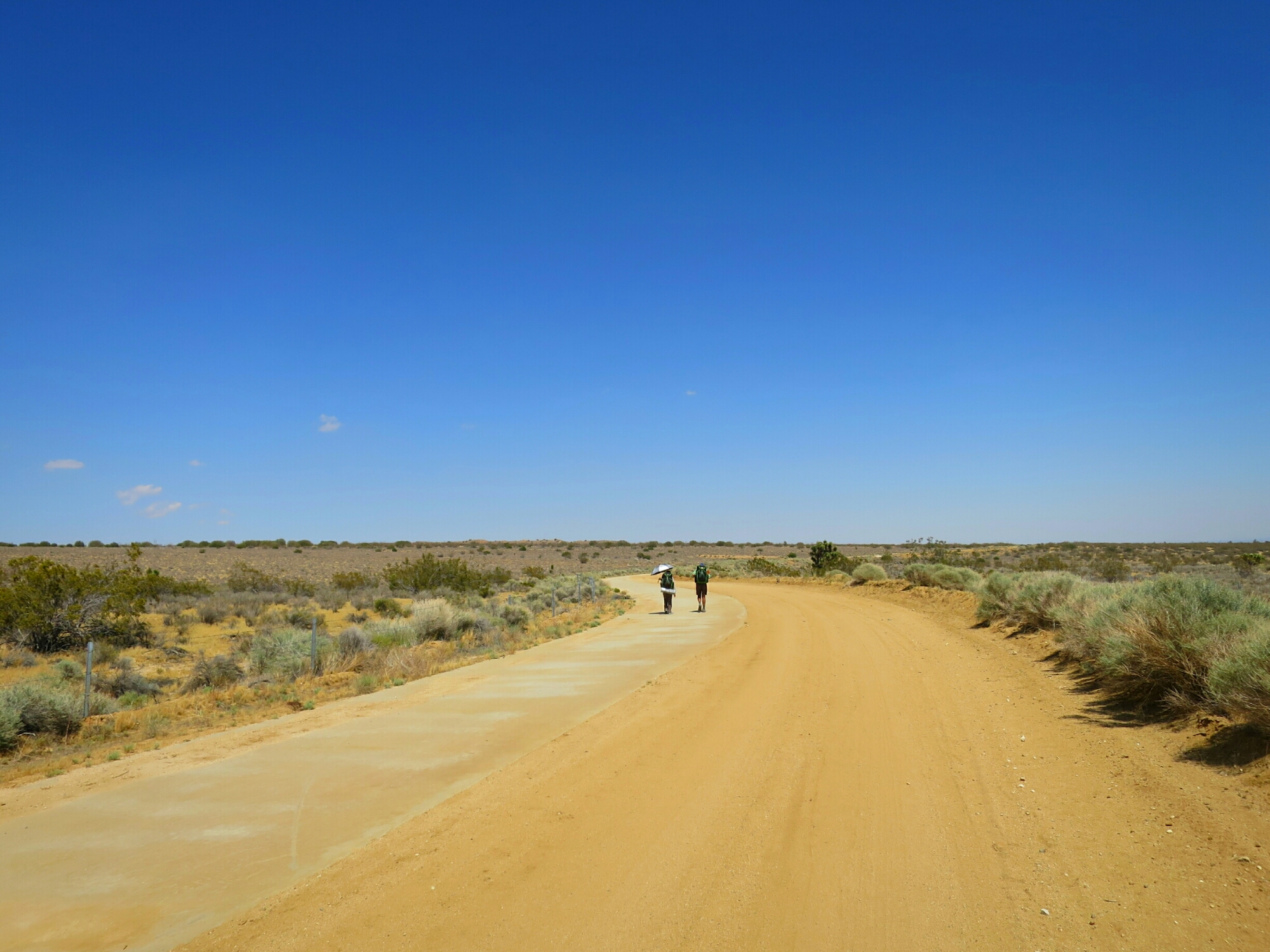 For the next 17 miles walking along and then on the LA Aqueduct we had little to no shelter from the sun. By the time we got to the covered section of the aqueduct the sun was high in the sky. For the first time, in what felt like weeks, we were baking in the direct blaze of the sun. At first it was nice to be warm again but then the heat of the day started to take its toll. We were going through quite a bit of water. Finding a spot of shade to sit under and have lunch was almost impossible. Air temperature was in the mid 80’s (close to 30°C). I was regretting getting black shoes as my feet felt like they were cooking. When we were not on the concrete cover of the aqueduct, we were walking in sand.