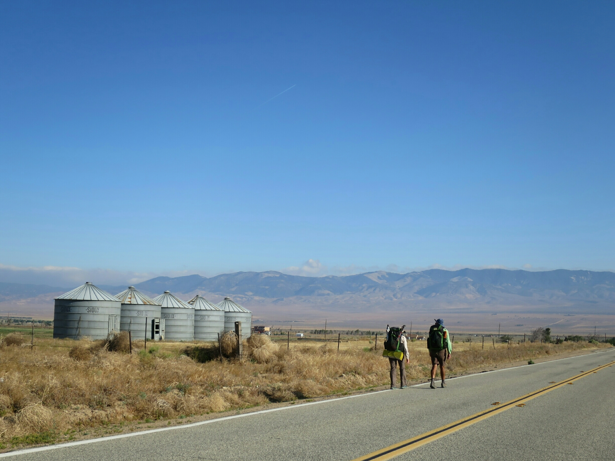 This morning she let us use her bathroom and fill our water bottles from the kitchen sink. And she made me a cup of coffee. I sat with her for a little bit drinking coffee talking about how she ended up living here. Hammer had finished packing up the tent and I knew he would be getting antsy about heading off as we had a long, hot section ahead of us with little water for long stretches. So we said our goodbyes and Hammer and I headed off with Petra. We had another 4 miles of road walking to do before we rejoined the PCT just near Hikertown at Mile 517.6.