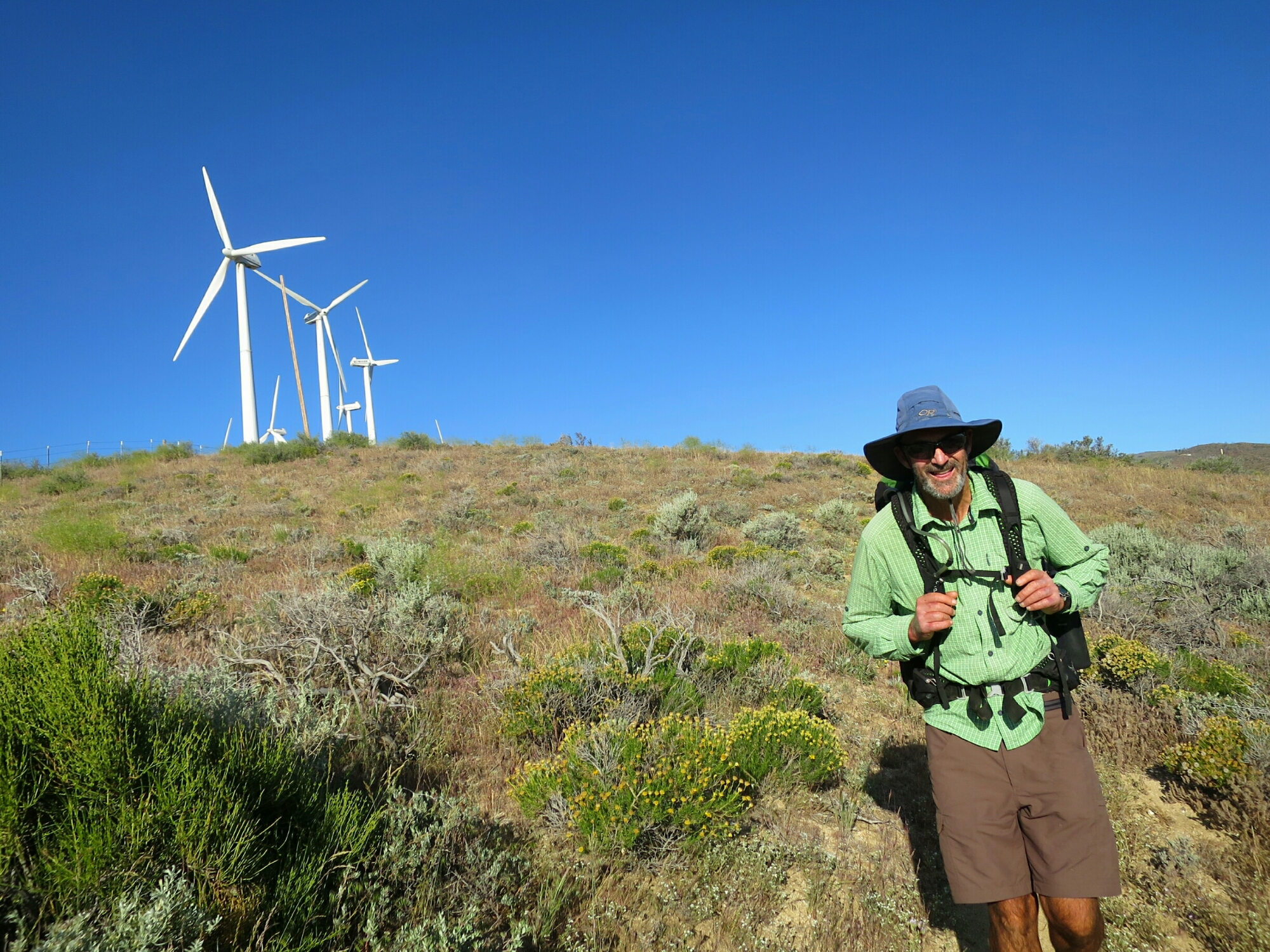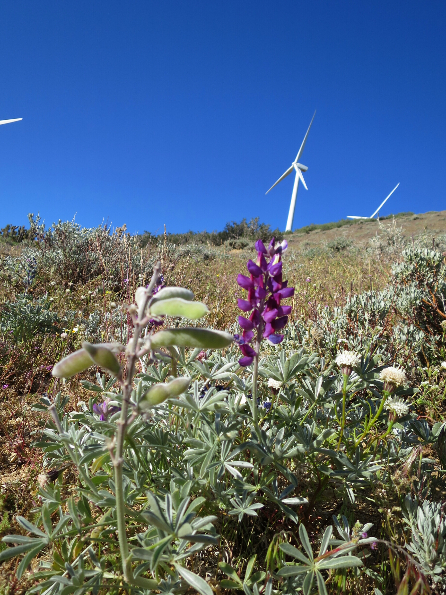 We had a super short hike along the side of a mountain with more wind turbines on the other side. The spring flowers carpeted the mountain side. I had to stop myself from taking yet more pictures of the beautiful carpet of colour and the majestic white towers of the wind turbines.