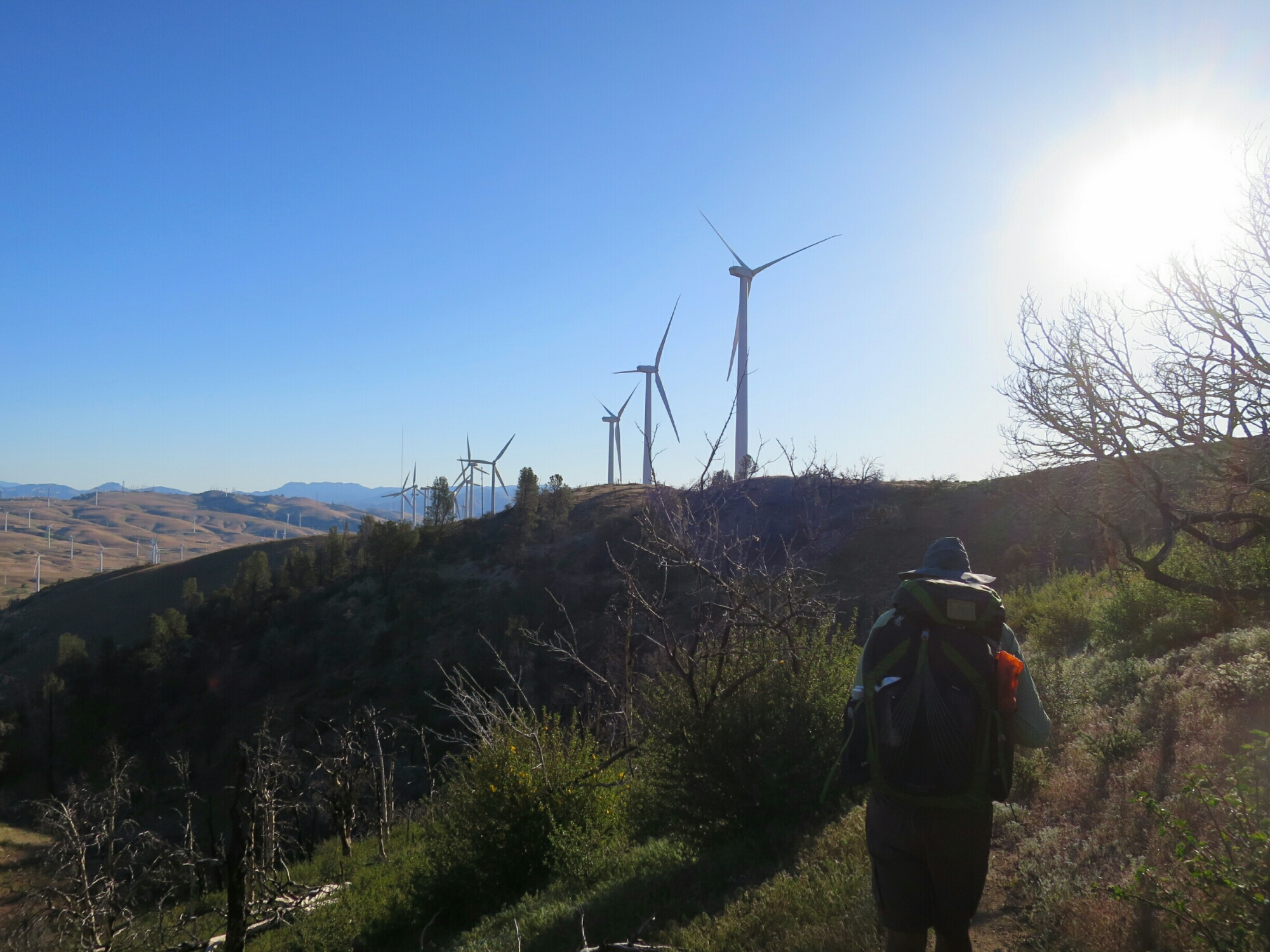 Our day started at 5.00am when I reached to close the hood on my sleeping bag as I was feeling cold. Touching the outside of my bag I realised it was wet. Hammers’ bag was worse. We slept without the rainfly on the tent, same as yesterday, except that today we were at higher elevation. If there is one thing I look forward to at the end of each day it is getting into my toasty warm sleeping bag. I can’t stand the idea of my sleeping bag getting wet. But today I was was OK, knowing we only had a short hike before we got to a hotel at Tehachapi. As nice as it is to fall asleep looking at the stars, a warm and dry sleeping bag is even nicer.