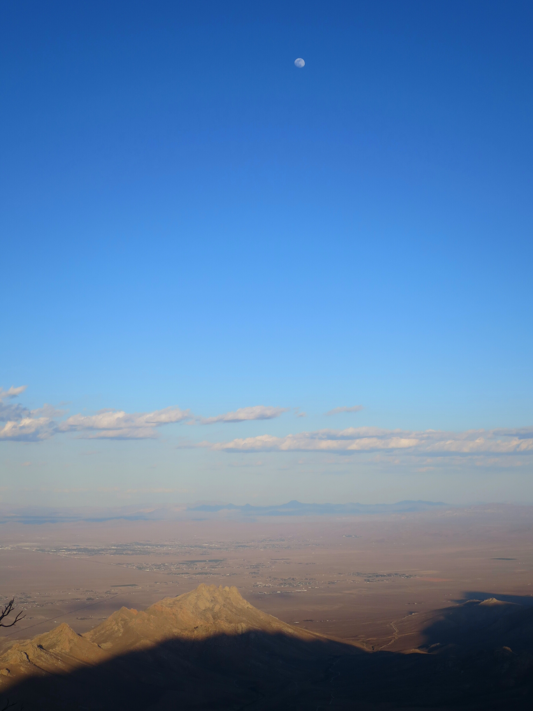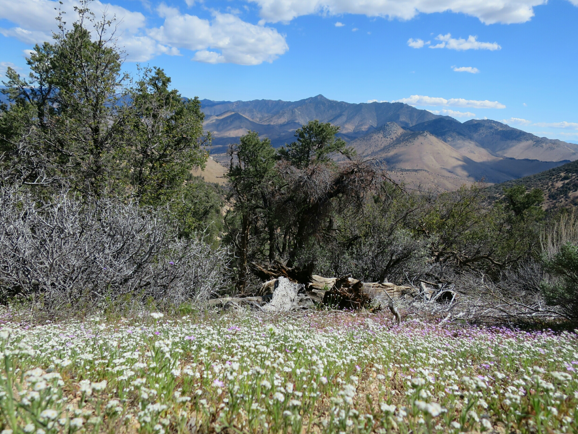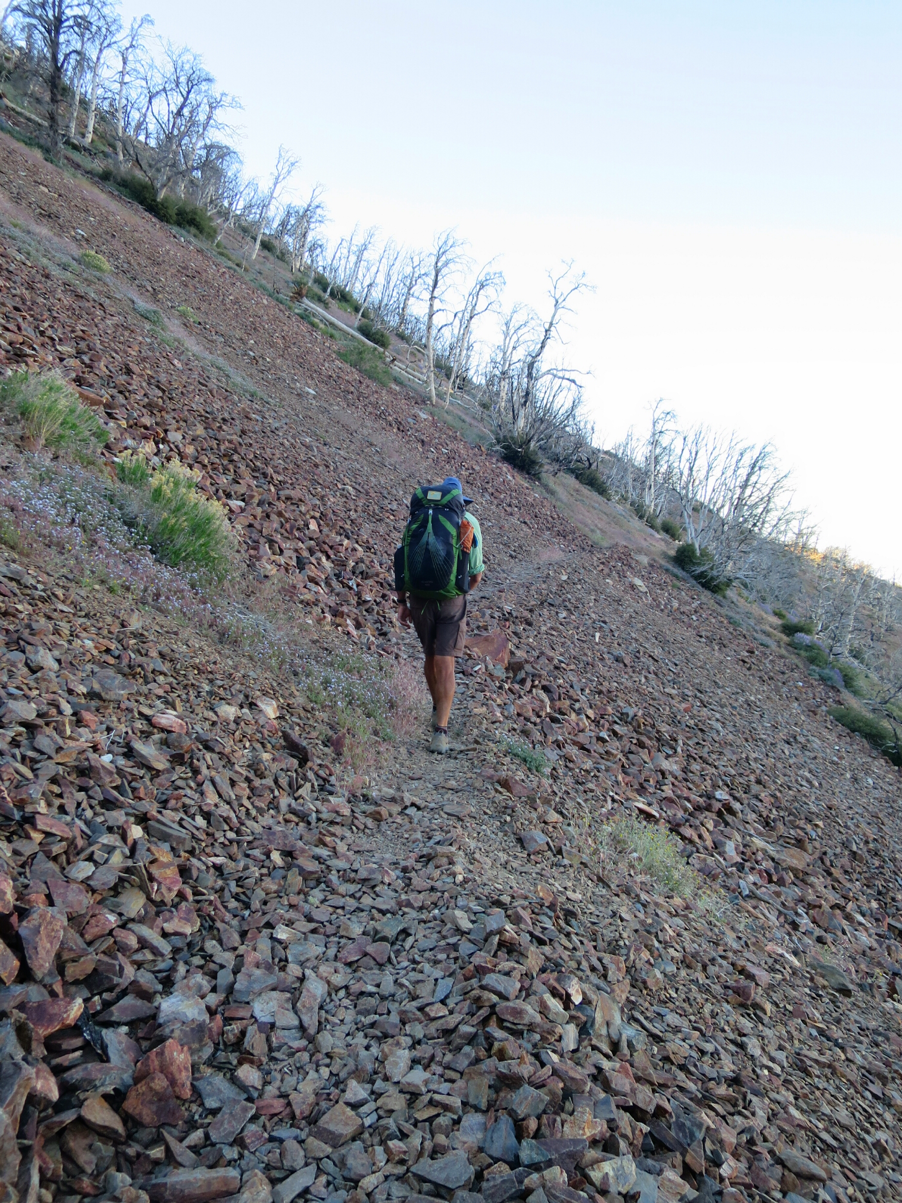 We hiked until we found a nice campspot on a small ridge at around 7, 000 feet in elevation. Fantastic views to the Mojave Desert in the east and Owens Peak to the north-east.