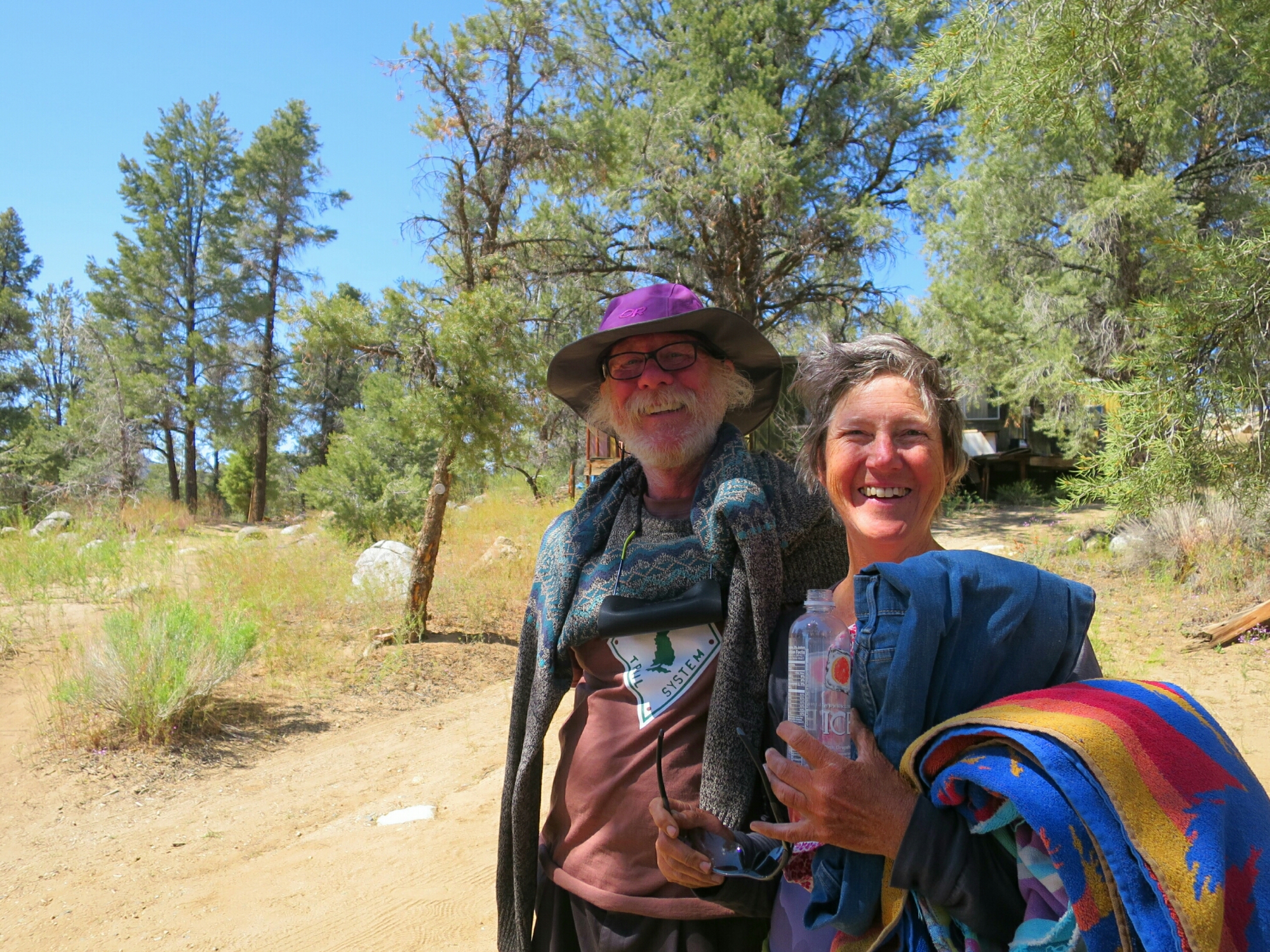 Petra “Ironlady” with whom we have been hiking for the past week, had organised for her food resupply to be delivered by a Trail Angel, Chris out of Bakersfield. While waiting for him to arrive we started to filter water which someone had delivered to the campground. Also camped nearby was PCT hiker ‘Altras’ husband who is her support crew. He was waiting for her to come in after us and while waiting he cooked some chocolate brownies. He brough some around and I mentioned how delicious these would be with coffee. So he offered to make me a cup with freshly ground coffee beans. I was in heaven, the coffee and the brownies were fantastic.